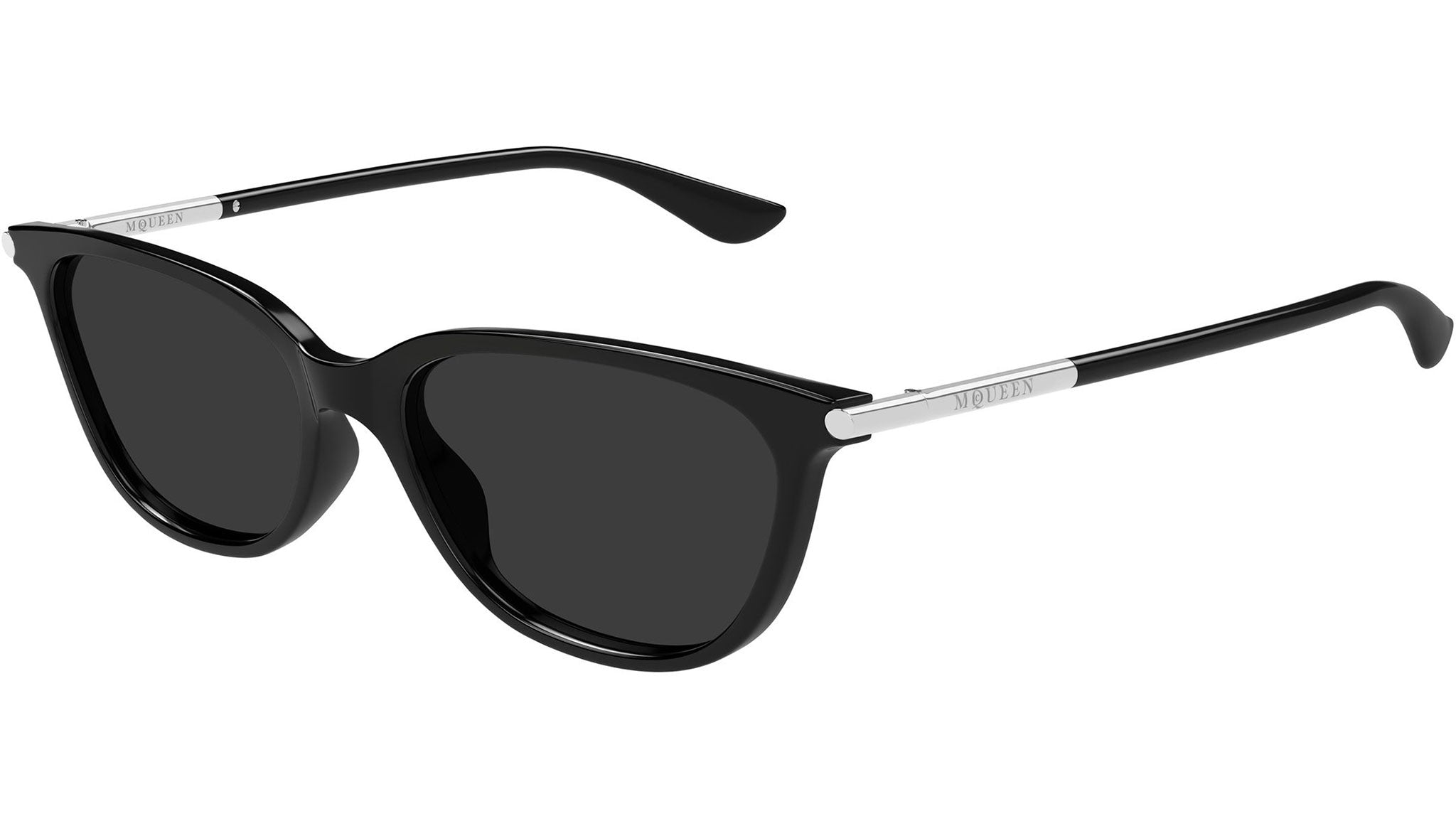 Occhiali da sole Alexander McQueen AM0553S 001 donna con montatura cat eye in acetato riciclato nero lucido tinta unita e lenti grigio tinta unita. Linea: T-Bar. Codice modello: AM0553S. Codice colore: 001. Made in Japan. Rivenditore autorizzato Alexander McQueen online. Gli occhiali vengono consegnati con custodia e accessori originali e sono coperti dalla garanzia ufficiale di 12 mesi del produttore.