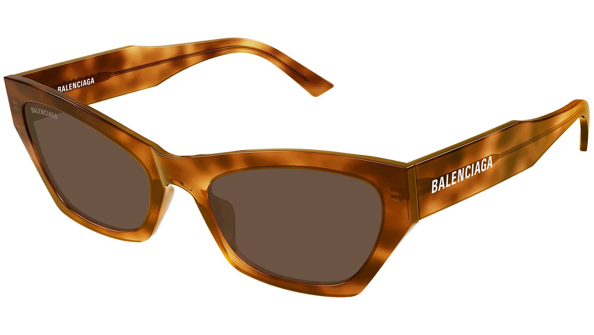Occhiali da sole Balenciaga BB0447S 003 donna con montatura cat eye in acetato riciclato avana biondo lucido e lenti marrone solido. Linea: Everyday. Codice modello: BB0447S. Codice colore: 003. Made in Italy. Rivenditore autorizzato Balenciaga online. Gli occhiali vengono consegnati con custodia e accessori originali e sono coperti dalla garanzia ufficiale di 12 mesi del produttore.