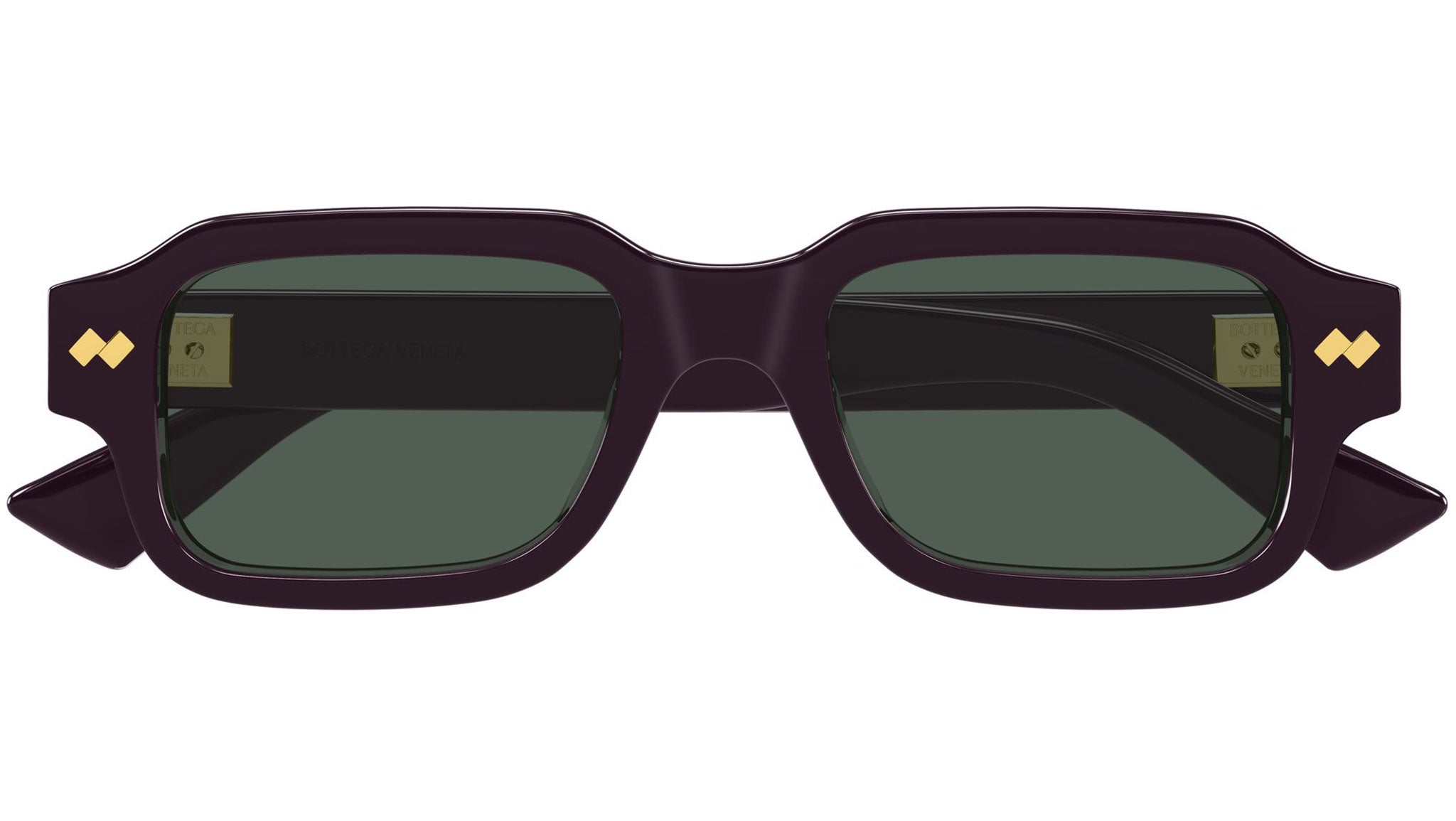 Occhiali da sole Bottega Veneta BV1442S 004 uomo con montatura rettangolare in acetato riciclato viola solido bilayer grigio trasparente e lenti verde tinta unita. Linea: Intrecciato. Codice modello: BV1442S. Codice colore: 004. Made in Japan. Rivenditore autorizzato Bottega Veneta online. Gli occhiali vengono consegnati con custodia e accessori originali e sono coperti dalla garanzia ufficiale di 12 mesi del produttore.