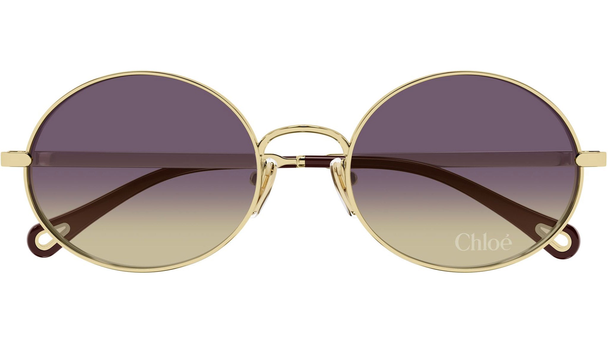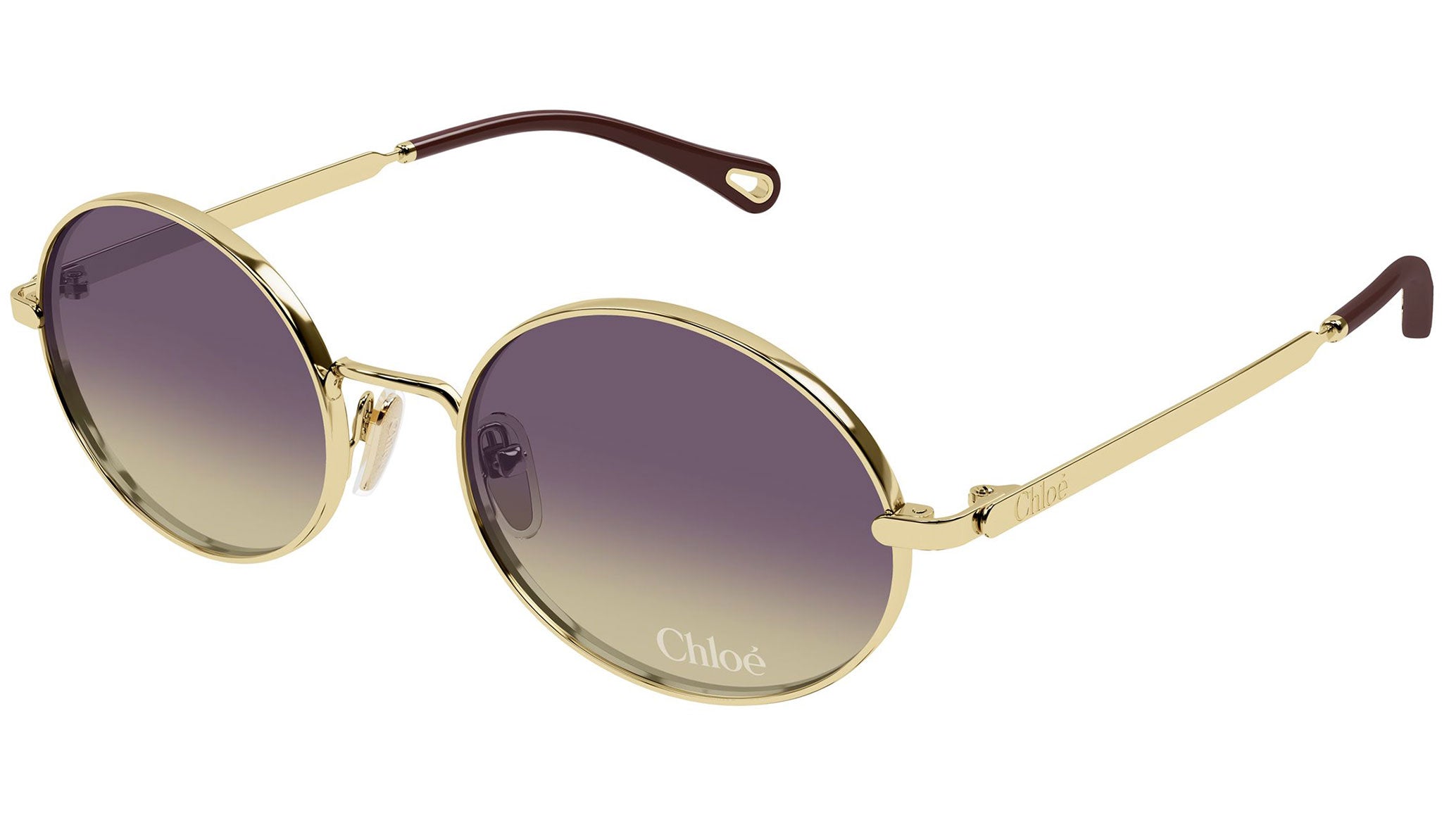 Occhiali da sole Chloé CH0326S 001 donna con montatura pantos in metallo oro lucido classico e lenti viola sfumato doppio a beige. Linea: Chloé. Codice modello: CH0326S. Codice colore: 001. Made in Italy. Rivenditore autorizzato Chloé online. Gli occhiali vengono consegnati con custodia e accessori originali e sono coperti dalla garanzia ufficiale di 12 mesi del produttore.