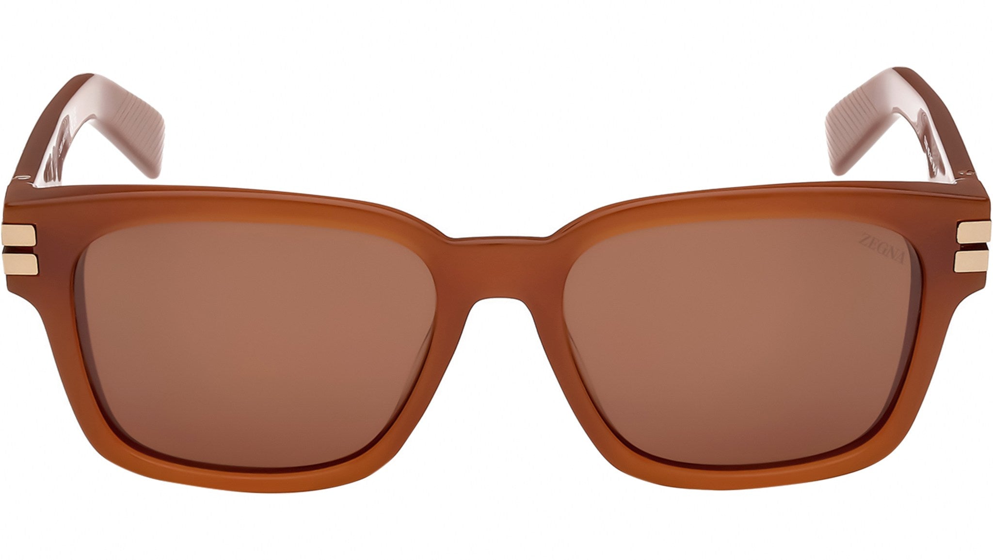Occhiali da sole Zegna uomo modello EZ0237 con montatura marrone chiaro lucido full-rim in acetato e lenti color marrone. Codice Brand: EZ0237. Codice colore: 45E. Rivenditore autorizzato Ermenegildo Zegna online. Gli occhiali vengono consegnati con custodia e accessori originali e sono coperti da garanzia standard di 12 mesi del produttore.