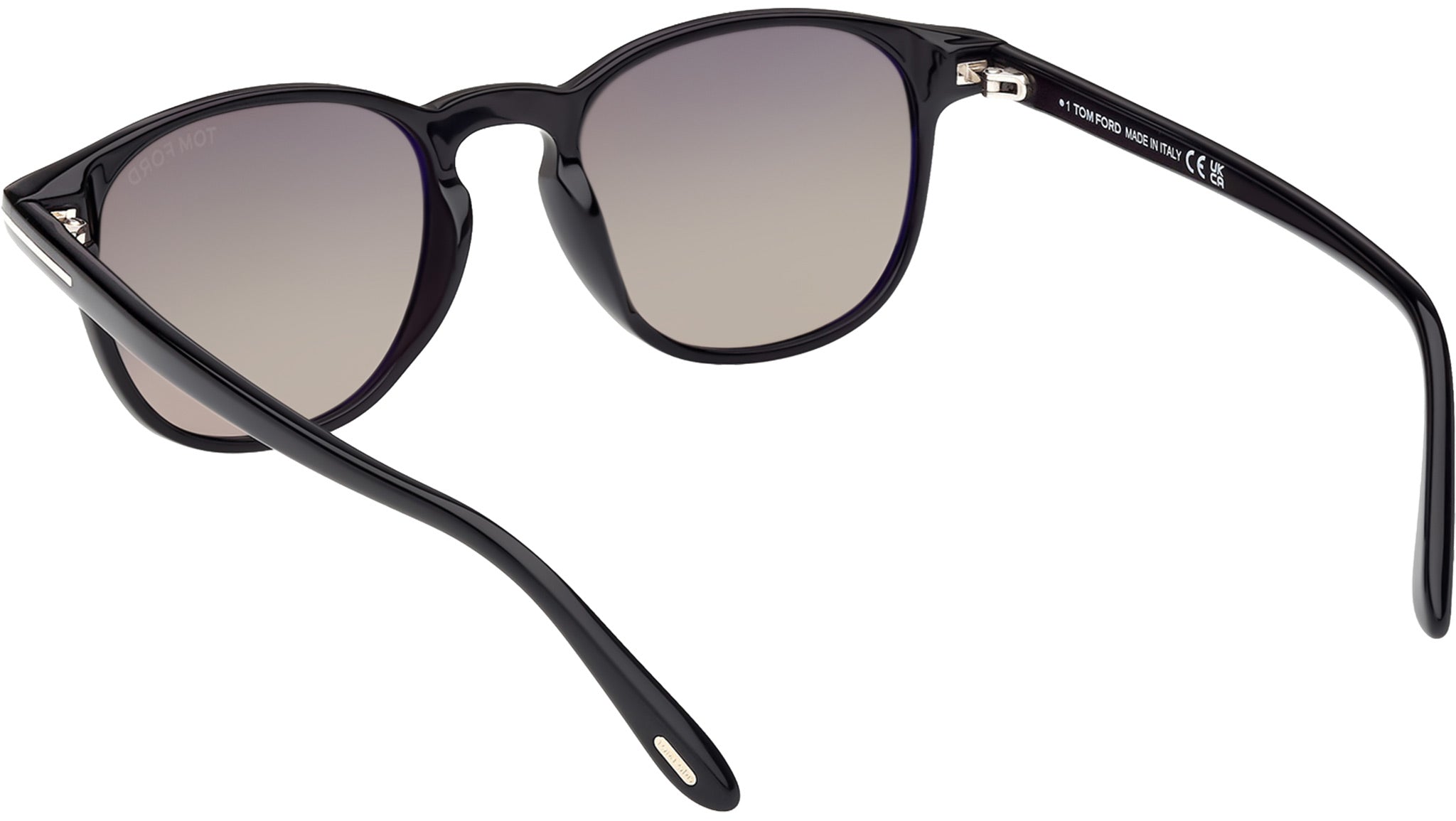 Occhiali da sole Tom Ford uomo modello Holt-02 FT1302 con montatura rotonda full-rim in acetato nero lucido e lenti color grigio fumo sfumato. Codice Brand: 1302. Codice colore: 01B. Rivenditore autorizzato Tom Ford online. Gli occhiali vengono consegnati con custodia e accessori originali e sono coperti da garanzia standard di 12 mesi del produttore.