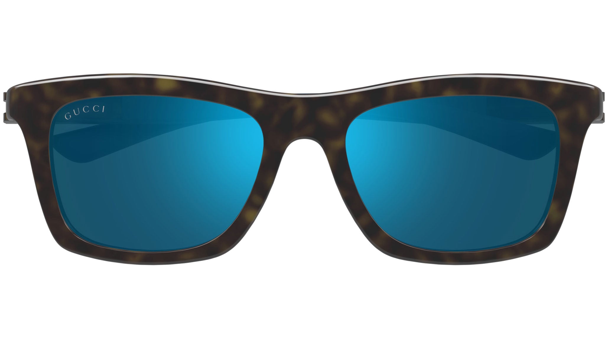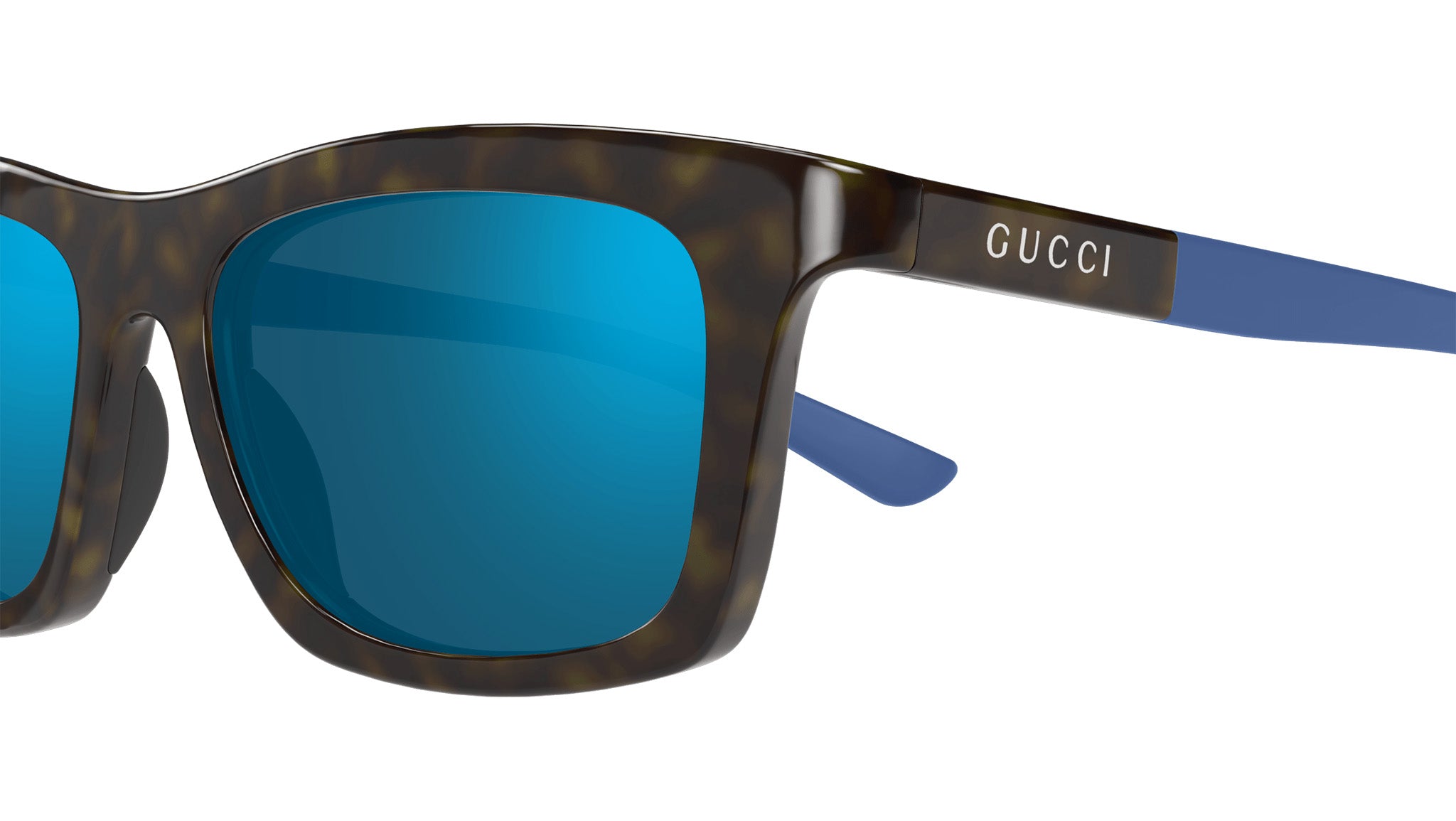 Gucci sunglasses model GG1735S Lettering line in injected rectangular shape color code 003 shiny dark tortoise with blue temples and solid gray lenses + blue ml. Authorized Gucci online dealer. The glasses are delivered with original case and accessories and are covered by the official 12-month manufacturer's warranty.
