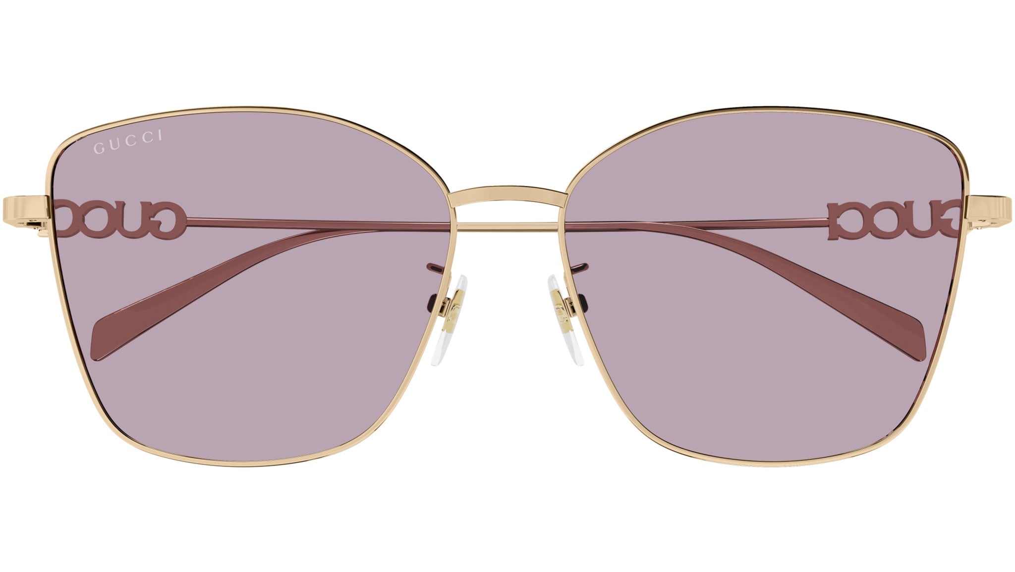 Occhiali da sole Gucci GG1805SA 003 donna con montatura butterfly in metallo oro rosa e lenti viola tinta unita. Linea: Lettering. Codice modello: GG1805SA. Codice colore: 003. Made in Japan. Rivenditore autorizzato Gucci online. Gli occhiali vengono consegnati con custodia e accessori originali e sono coperti dalla garanzia ufficiale di 12 mesi del produttore.