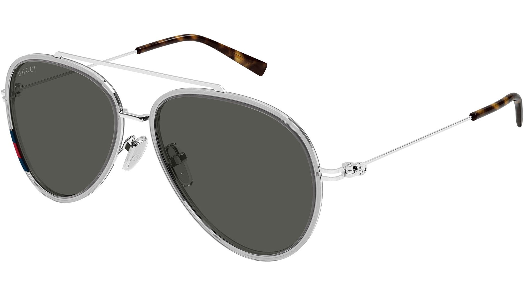 Occhiali da sole Gucci GG1981S 005 uomo con montatura aviatore in inietatto grigio nuvolato trasparente lucido con banda blu / rossa / blu e lenti grigio tinta unita in bio nylon. Linea: Emblem. Codice modello: GG1981S. Codice colore: 005. Made in Japan. Rivenditore autorizzato Gucci online. Gli occhiali vengono consegnati con custodia e accessori originali e sono coperti dalla garanzia ufficiale di 12 mesi del produttore.