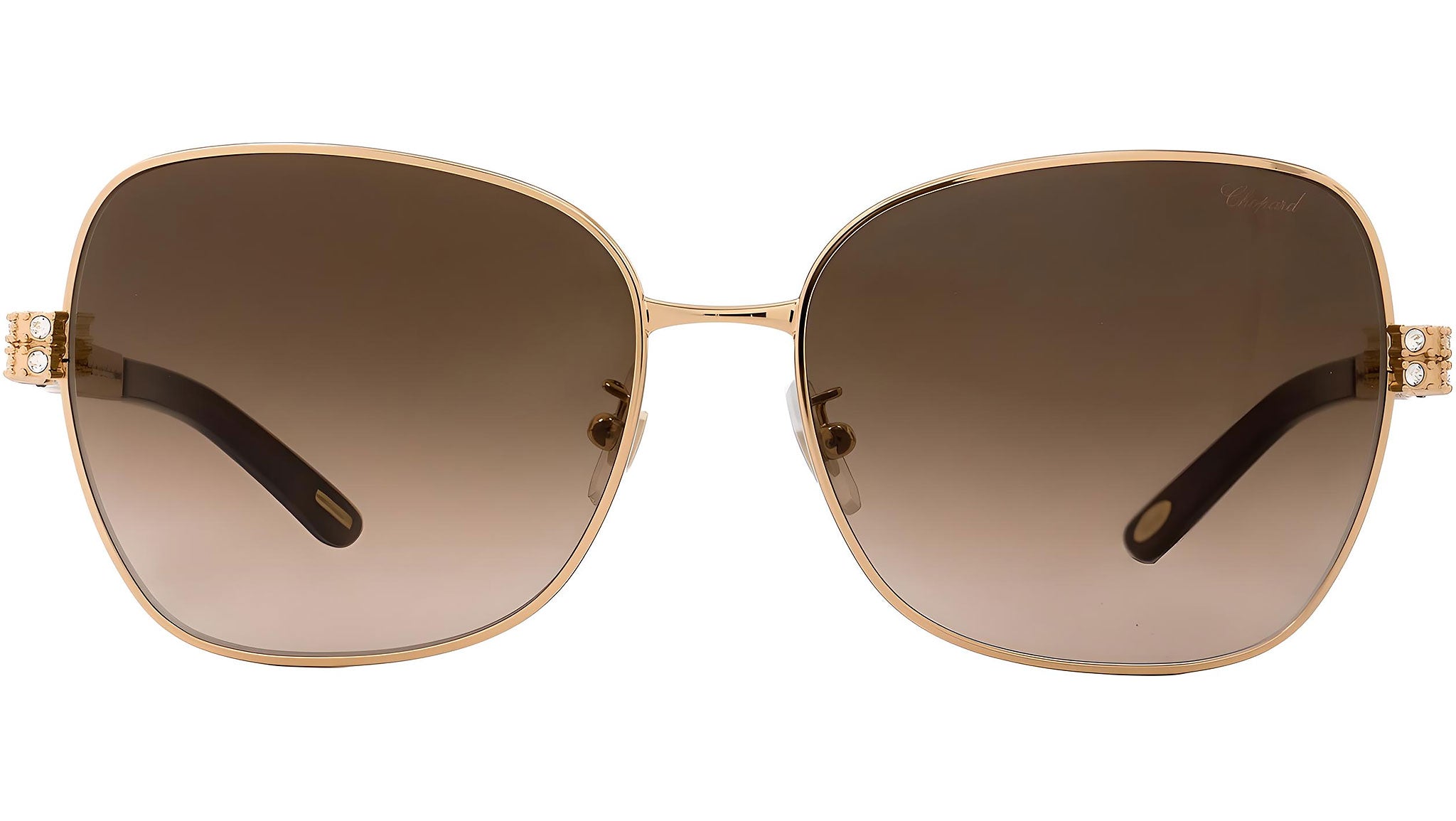 Occhiali da sole Chopard SCHB25S 08MZ con montatura square da donna in metallo color oro e lenti color marrone sumato. Rivenditore autorizzato Chopard online. Ogni prodotto Chopard viene consegnato con astuccio originale e accessori ed è coperto da garanzia del produttore di 12 mesi.