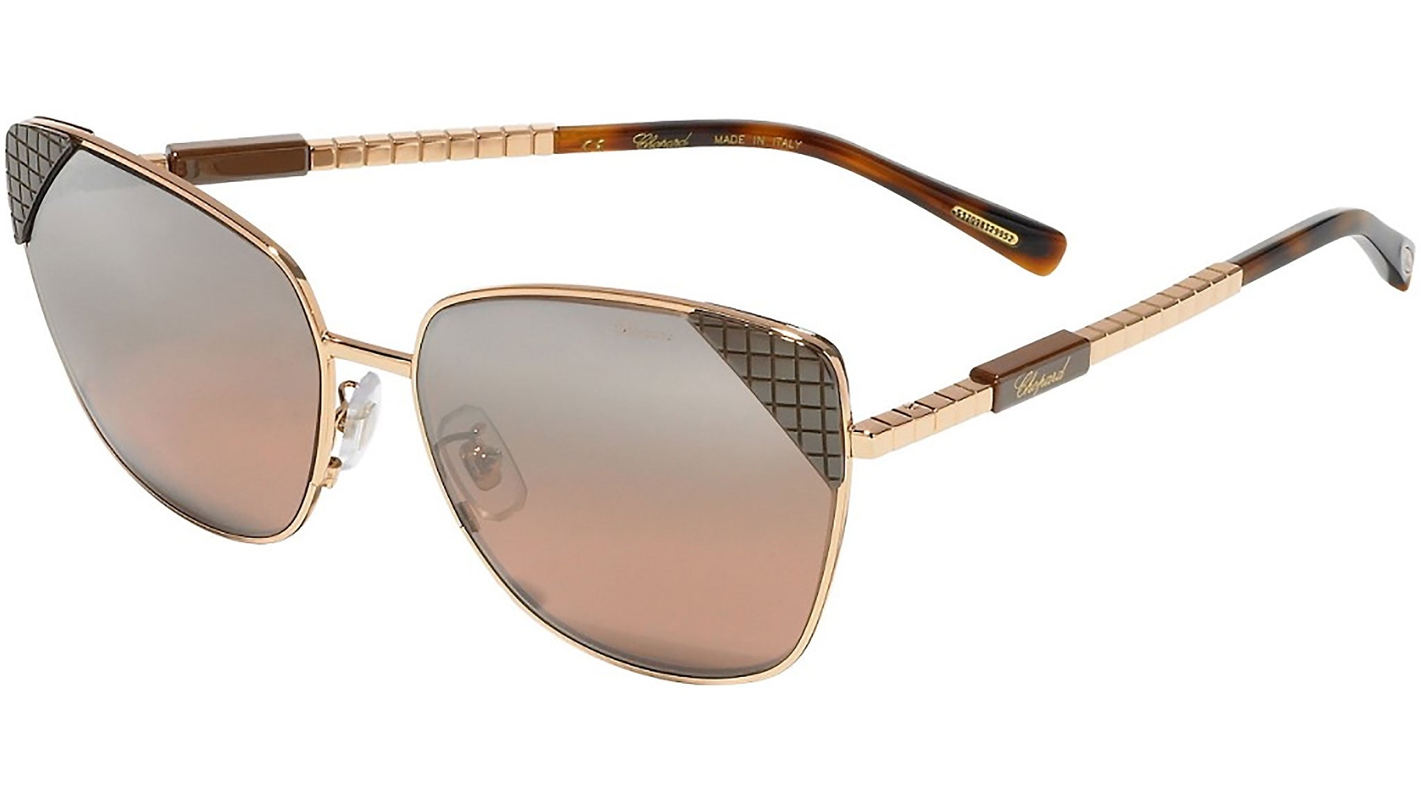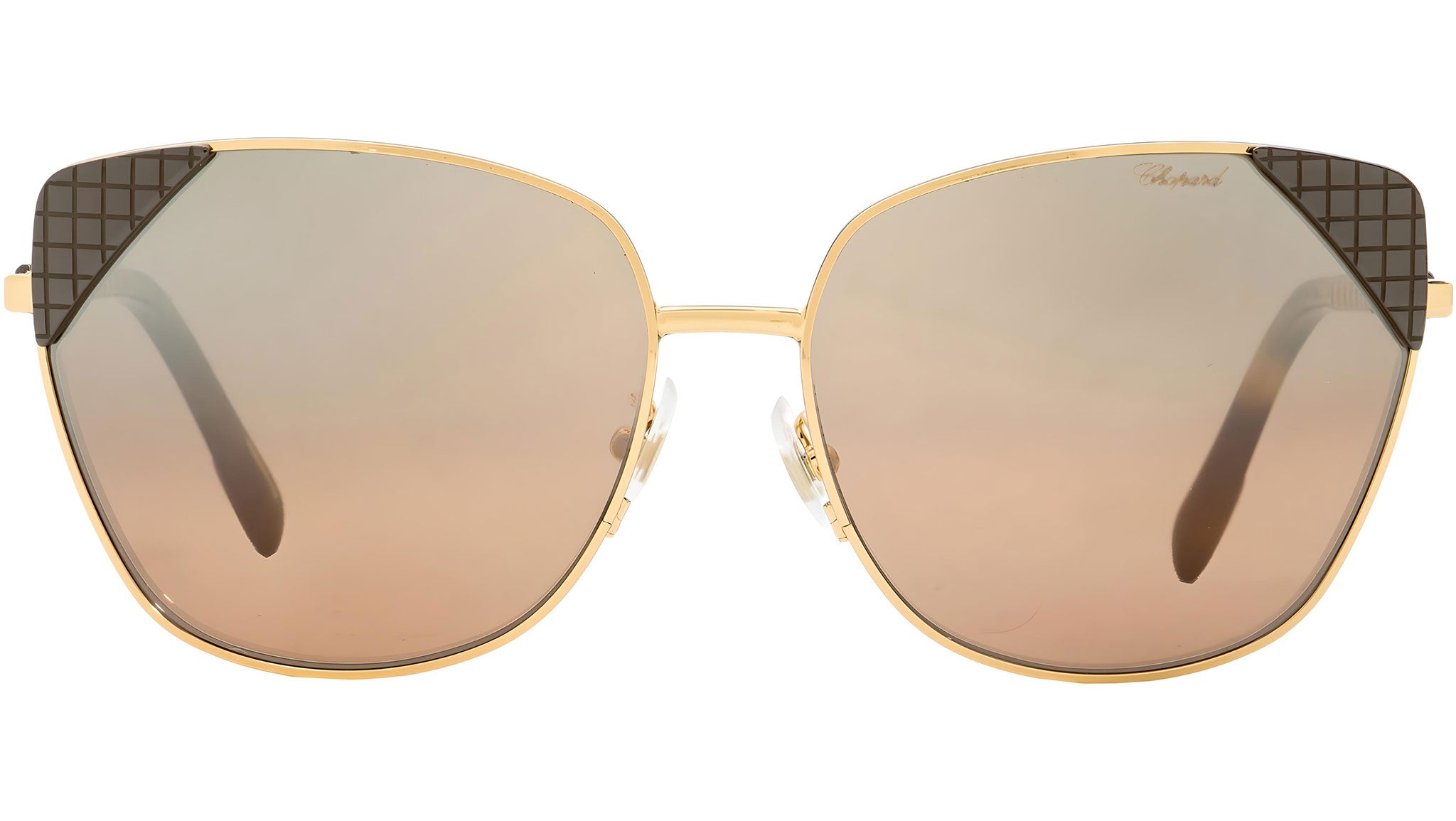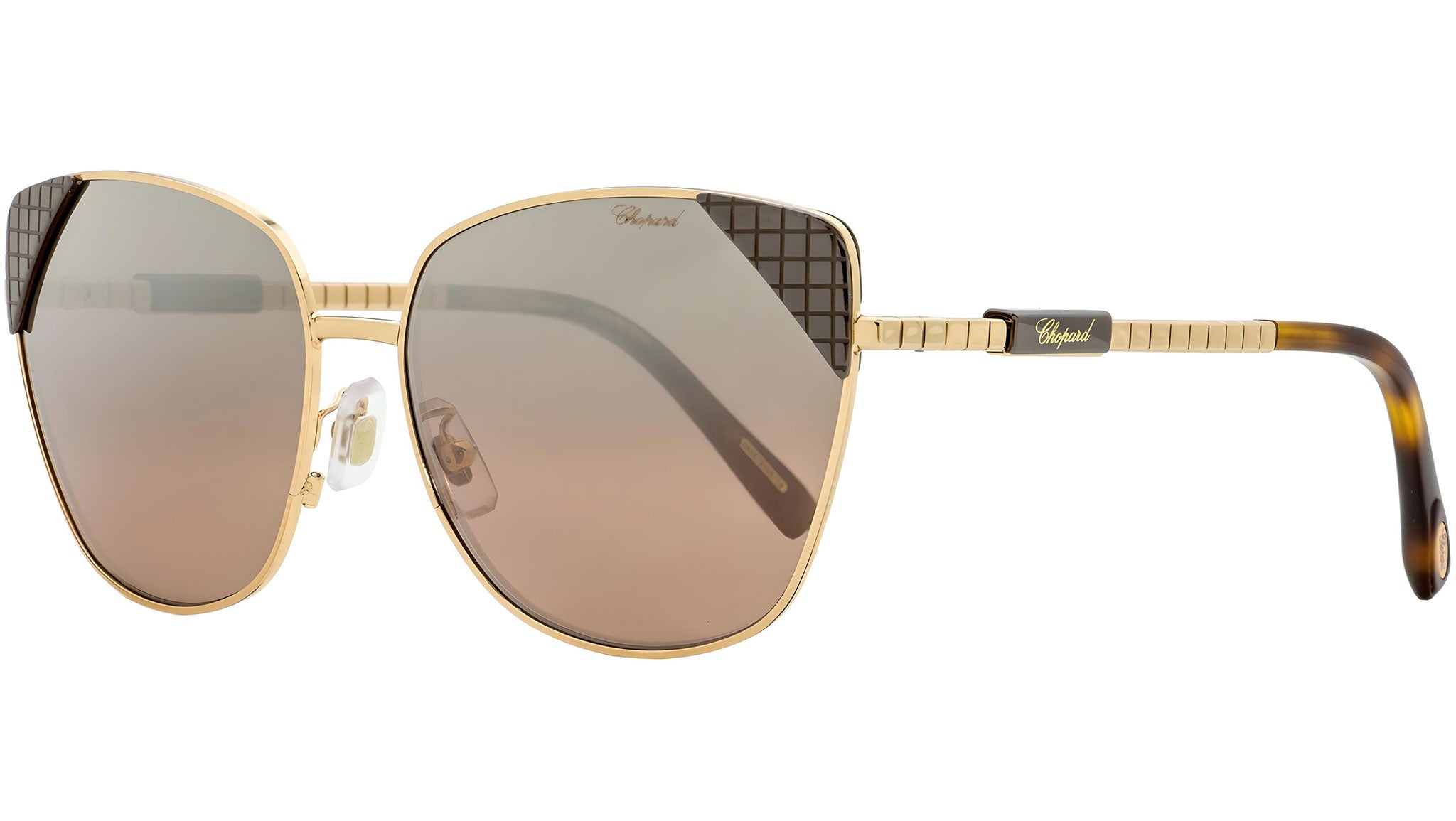 Occhiali da sole Chopard SCHC41 8FCX con montatura cat eye da donna in metallo color oro e marrone e lenti color marrone. Rivenditore autorizzato Chopard online. Ogni prodotto Chopard viene consegnato con astuccio originale e accessori ed è coperto da garanzia del produttore di 12 mesi.