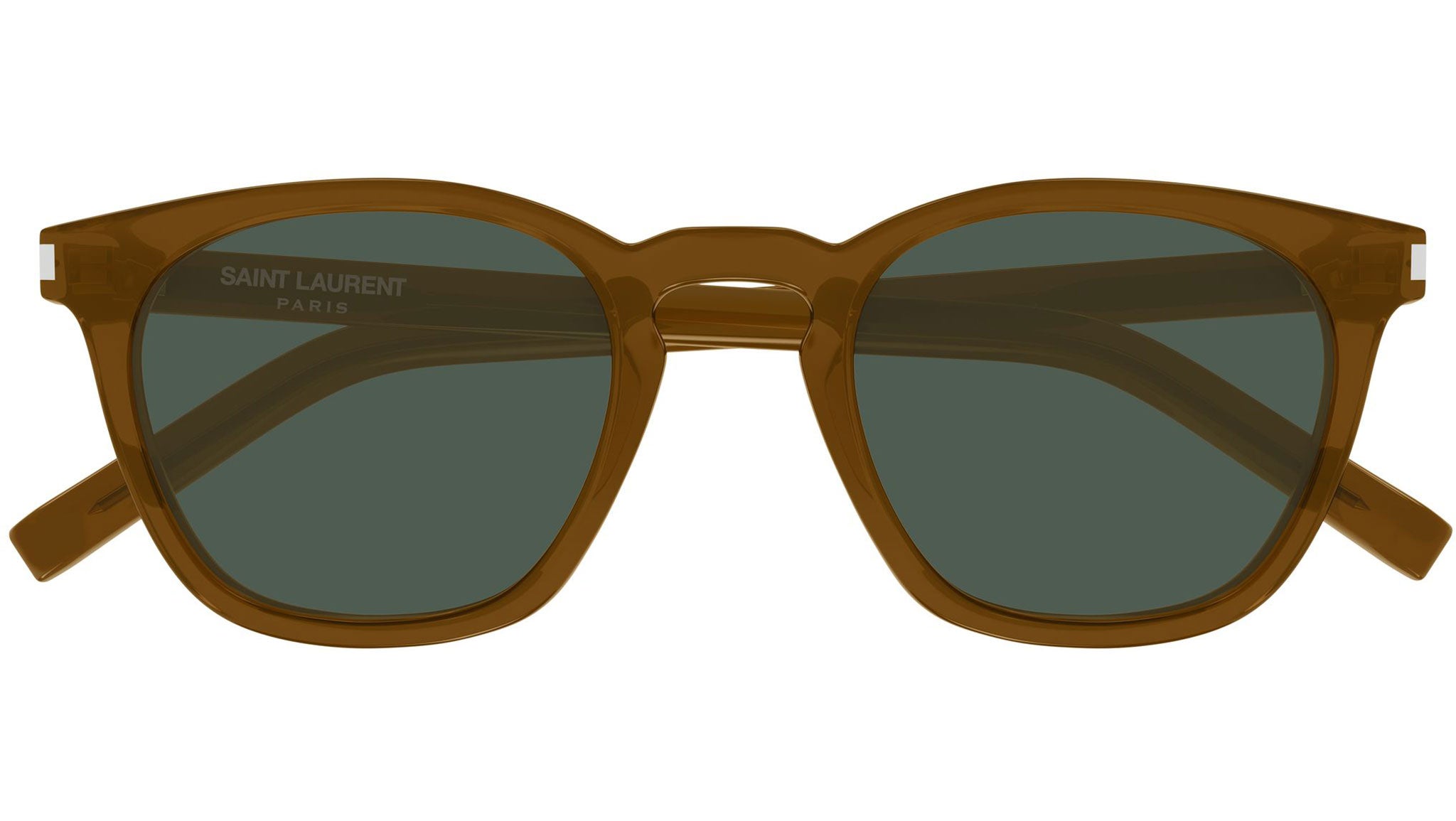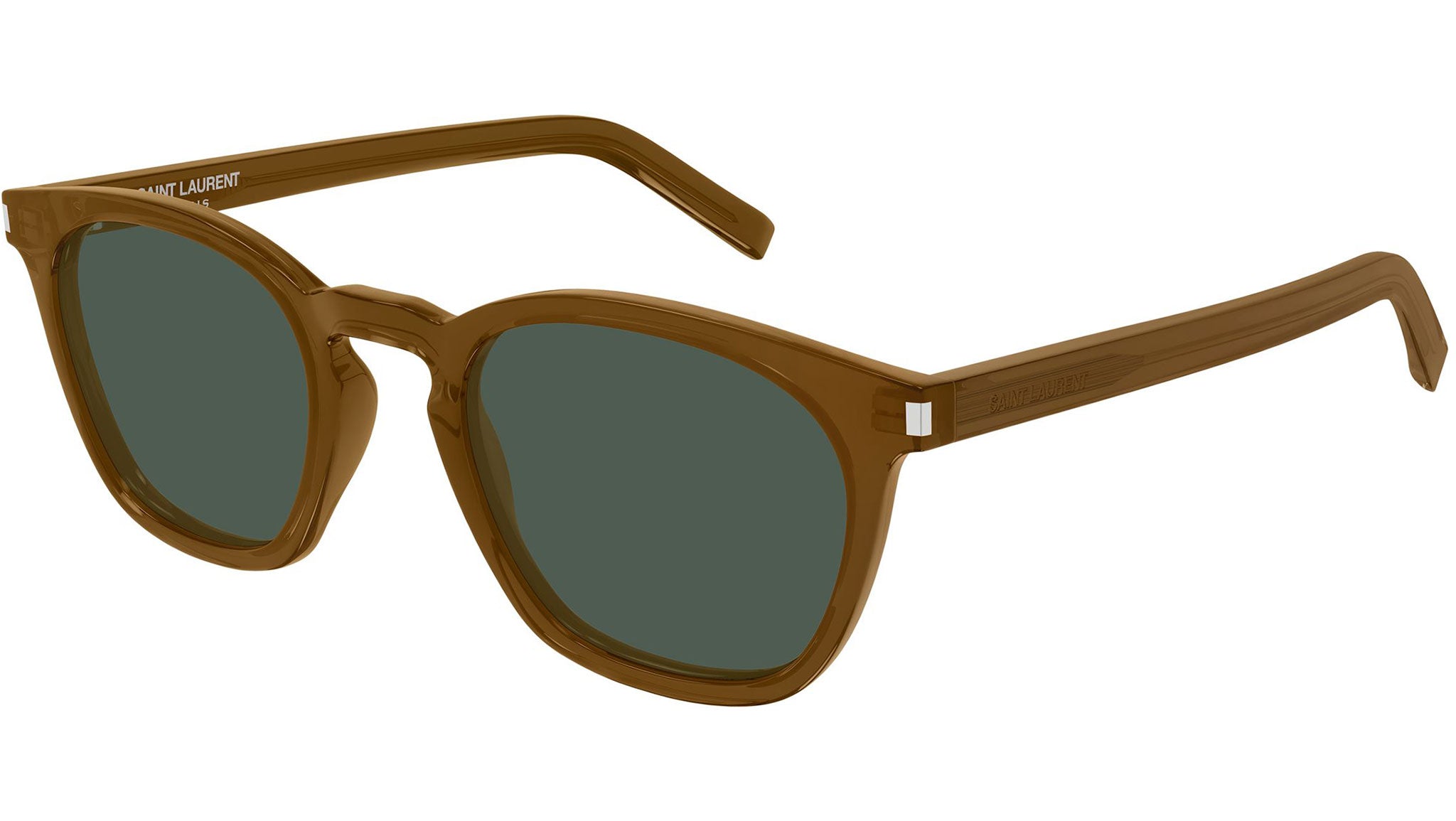 Occhiali da sole Saint Laurent SL 28 057 unisex con montatura rettangolare in acetato marrone cognac trasparente e lenti verde tinta unita. Linea: Corner Angle. Codice modello: SL 28. Codice colore: 057. Made in Italy. Rivenditore autorizzato Saint Laurent online. Gli occhiali vengono consegnati con custodia e accessori originali e sono coperti dalla garanzia ufficiale di 12 mesi del produttore.