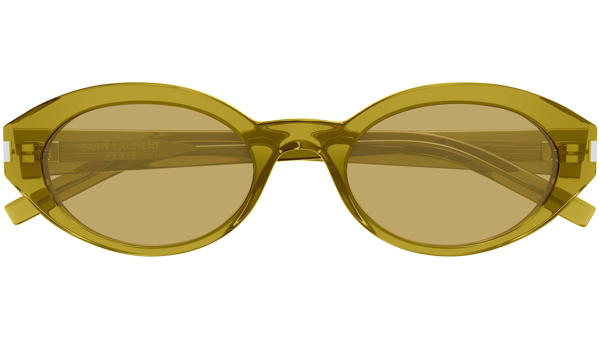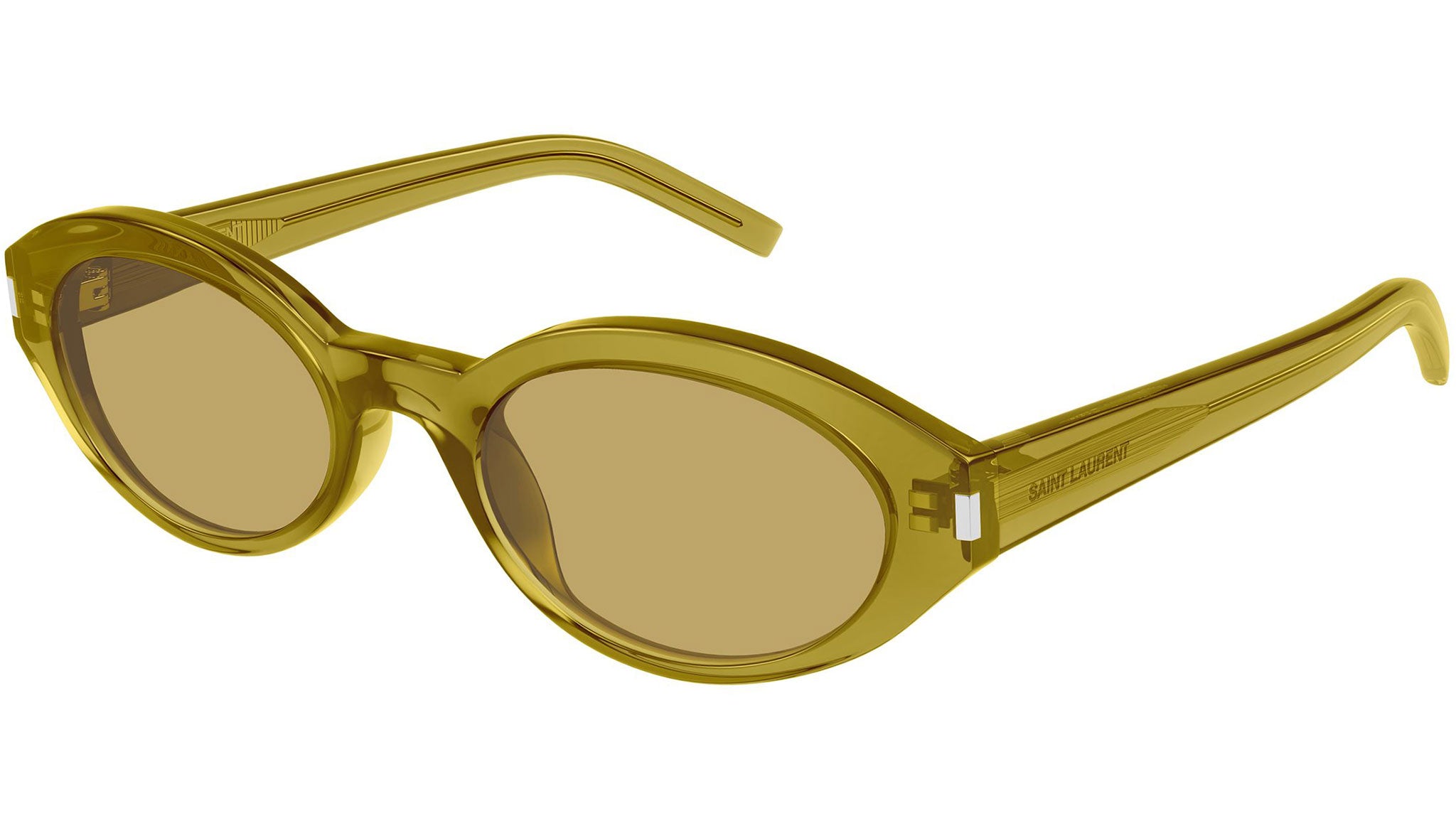 Occhiali da sole Saint Laurent SL 567 004 donna con montatura ovale in acetato riciclato verde e lenti beige nicotina tinta unita. Linea: Corner Angle. Codice modello: SL 567. Codice colore: 004. Made in Italy. Rivenditore autorizzato Saint Laurent online. Gli occhiali vengono consegnati con custodia e accessori originali e sono coperti dalla garanzia ufficiale di 12 mesi del produttore.