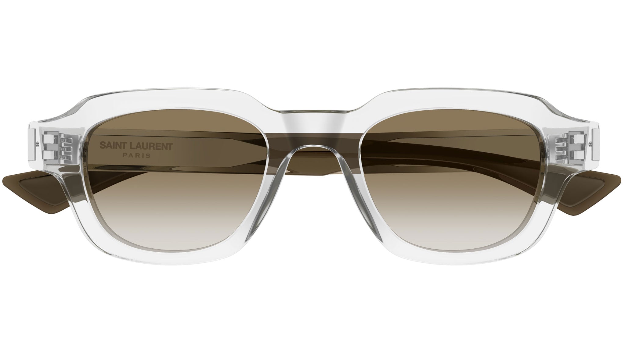 Occhiali da sole Saint Laurent SL 791 003 unisex con montatura rettangolare in acetato riciclato cristallo e lenti marrone sfumato. Linea: Corner Angle. Codice modello: SL 791. Codice colore: 003. Made in Japan. Rivenditore autorizzato Saint Laurent online. Gli occhiali vengono consegnati con custodia e accessori originali e sono coperti dalla garanzia ufficiale di 12 mesi del produttore.