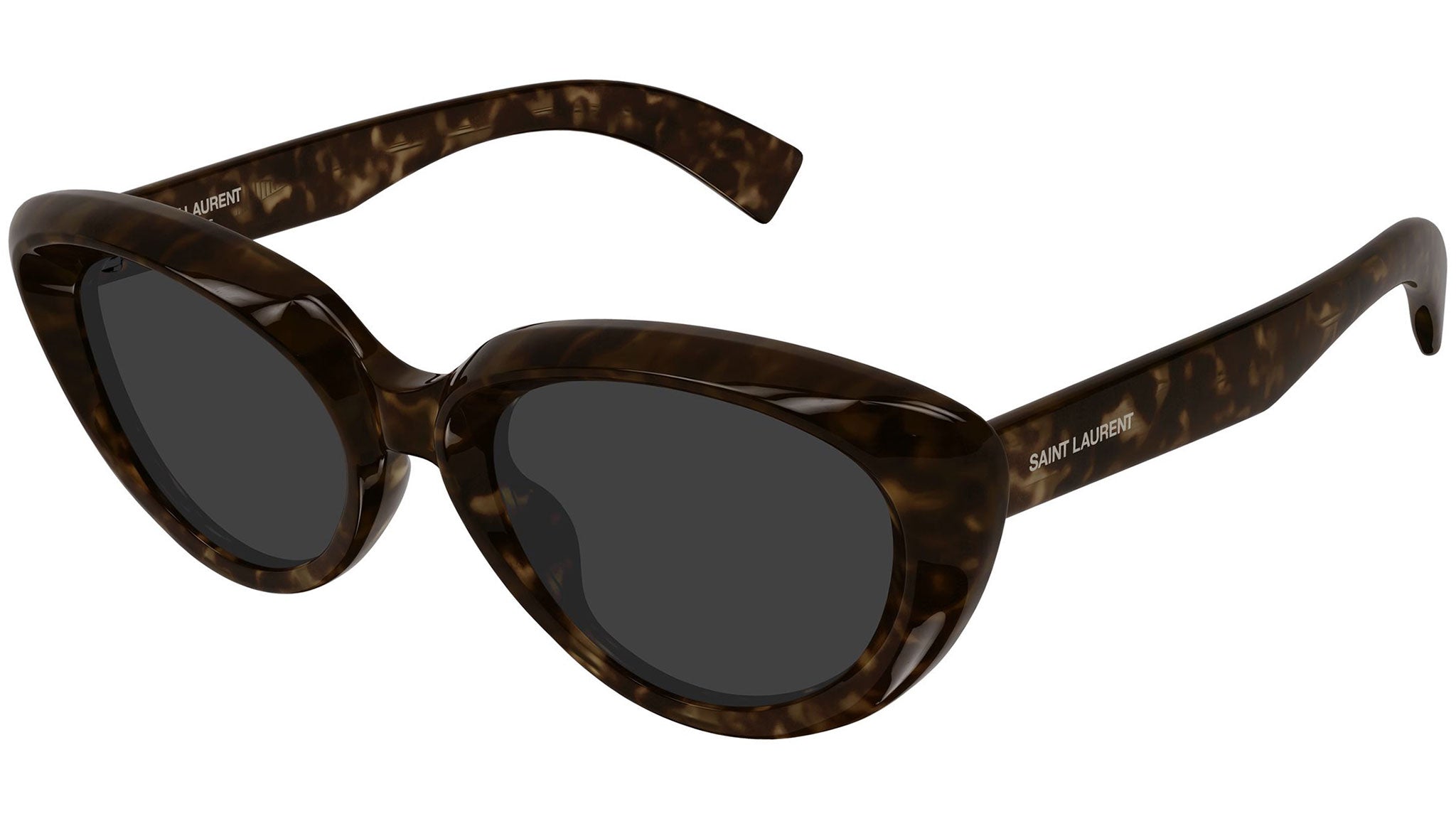 Occhiali da sole Saint Laurent SL 859 002 donna con montatura cat eye in acetato riciclato avana scuro lucido e lenti grigio tinta unita. Linea: SL Logo. Codice modello: SL 859. Codice colore: 002. Made in Italy. Rivenditore autorizzato Saint Laurent online. Gli occhiali vengono consegnati con custodia e accessori originali e sono coperti dalla garanzia ufficiale di 12 mesi del produttore.