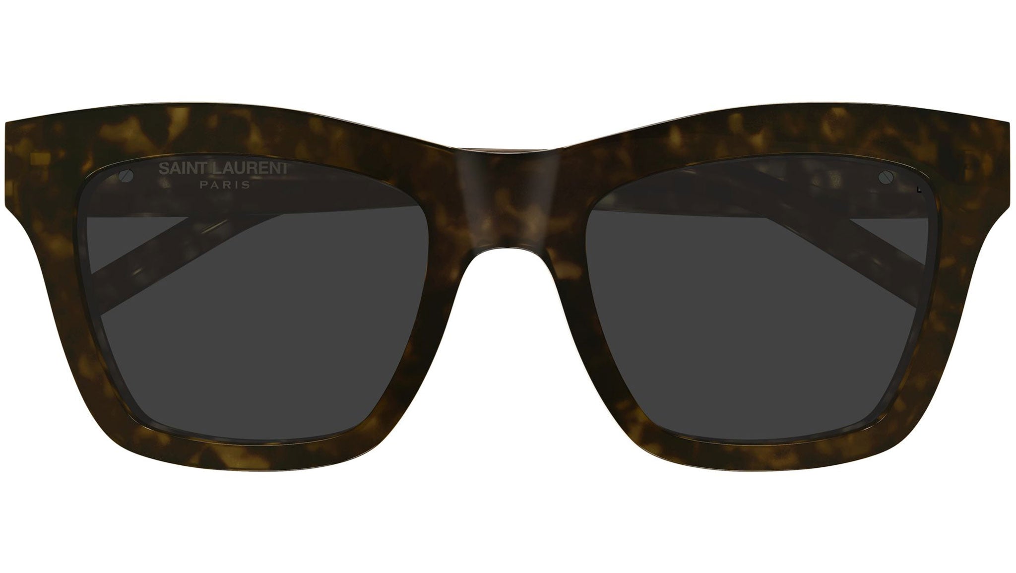 Occhiali da sole Saint Laurent SL M156 002 donna con montatura cat eye in acetato riciclato avana scuro lucido e lenti grigio tinta unita. Linea: Monogram. Codice modello: SL M156. Codice colore: 002. Made in Italy. Rivenditore autorizzato Saint Laurent online. Gli occhiali vengono consegnati con custodia e accessori originali e sono coperti dalla garanzia ufficiale di 12 mesi del produttore.