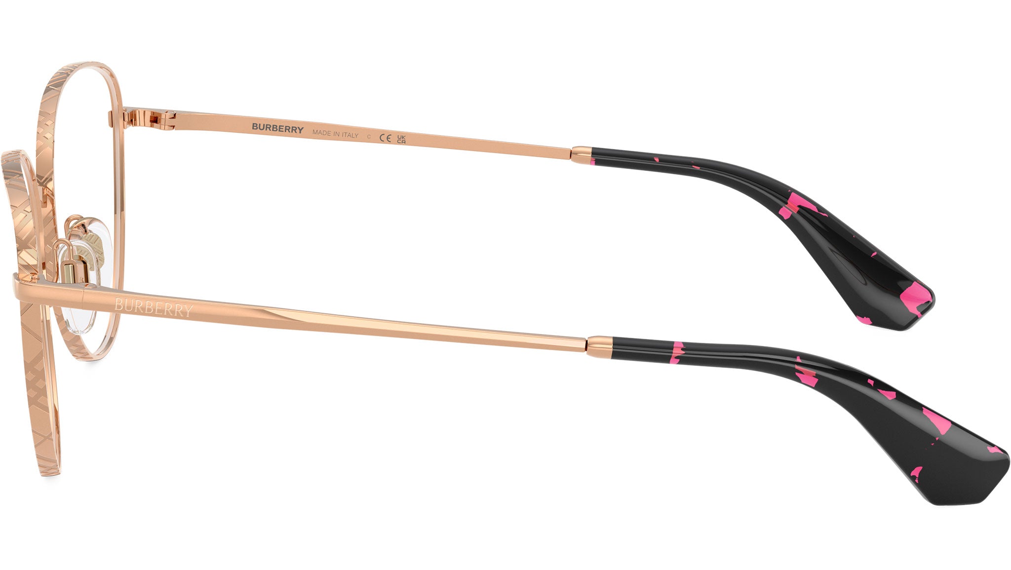 Occhiali da vista Burberry donna modello BE1398 1337 con montatura full rim in metallo oro rosa e lenti demo. Naselli regolabili. Fitting consigliato: L. Linea: Metal Check. Codice modello: 0BE1398. Codice colore: 1337. Rivenditore autorizzato online Burberry. Gli occhiali includono la custodia e gli accessori originali e sono coperti da una garanzia globale di 12 mesi.