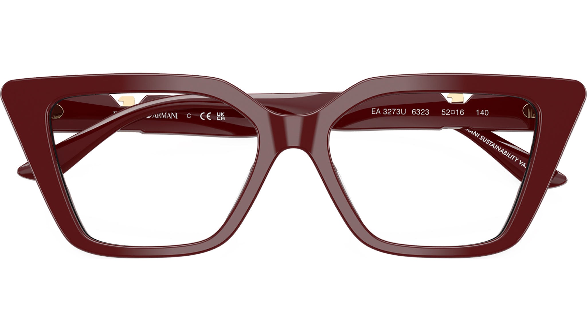 Occhiali da vista Emporio Armani EA3273U 6323 con montatura cat eye in acetato bordeaux lucido e lenti demo. Fit universale. Linea: Modern. Codice modello: 0EA3273U. Codice colore: 6323. Rivenditore autorizzato Emporio Armani online. Gli occhiali vengono consegnati con custodia e accessori originali e sono coperti dalla garanzia ufficiale di 12 mesi del produttore.