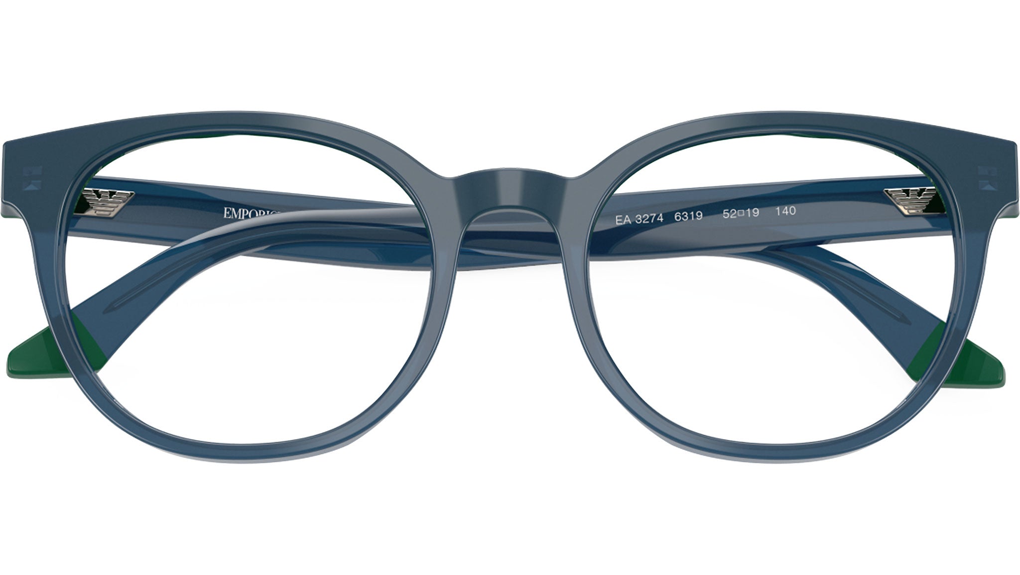 Occhiali da vista Emporio Armani EA3274 6319 con montatura rotonda in acetato blu opale / verde e lenti demo. Vestibilità a ponte alto. Linea: Essential Leisure. Codice modello: 0EA3274. Codice colore: 6319. Rivenditore autorizzato Emporio Armani online. Gli occhiali vengono consegnati con custodia e accessori originali e sono coperti dalla garanzia ufficiale di 12 mesi del produttore.
