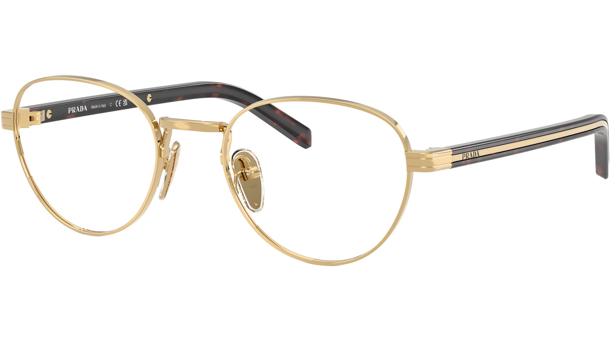 Occhiali da vista Prada PR B53V 5AK1O1 donna con montatura rotonda in acciaio oro e lenti demo. Naselli regolabili. Linea: Signature. Codice modello: PRB53V. Codice colore: 5AK1O1. Made in Italy. Rivenditore autorizzato Prada online. Gli occhiali vengono consegnati con custodia e accessori originali e sono coperti dalla garanzia ufficiale di 12 mesi del produttore.