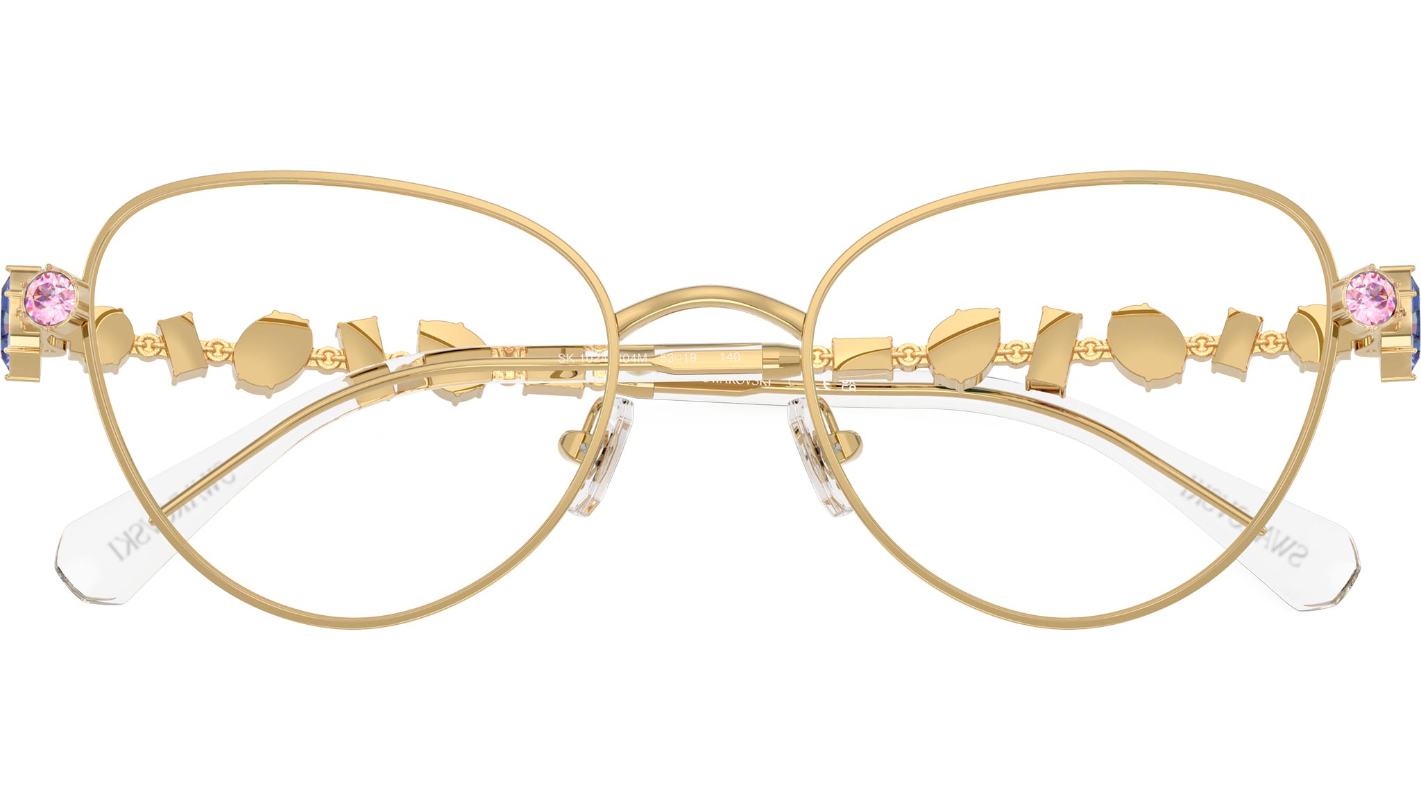 Occhiali da vista Swarovski SK1024 404M donna, con montatura cat eye in metallo color oro e lenti demo. Naselli regolabili. Linea: Science of Facets. Codice modello: SK1024. Codice colore: 404M. Rivenditore autorizzato Swarovski Eyewear online. Ogni prodotto Swarovski viene consegnato con astuccio originale e accessori ed è coperto da garanzia del produttore di 12 mesi.