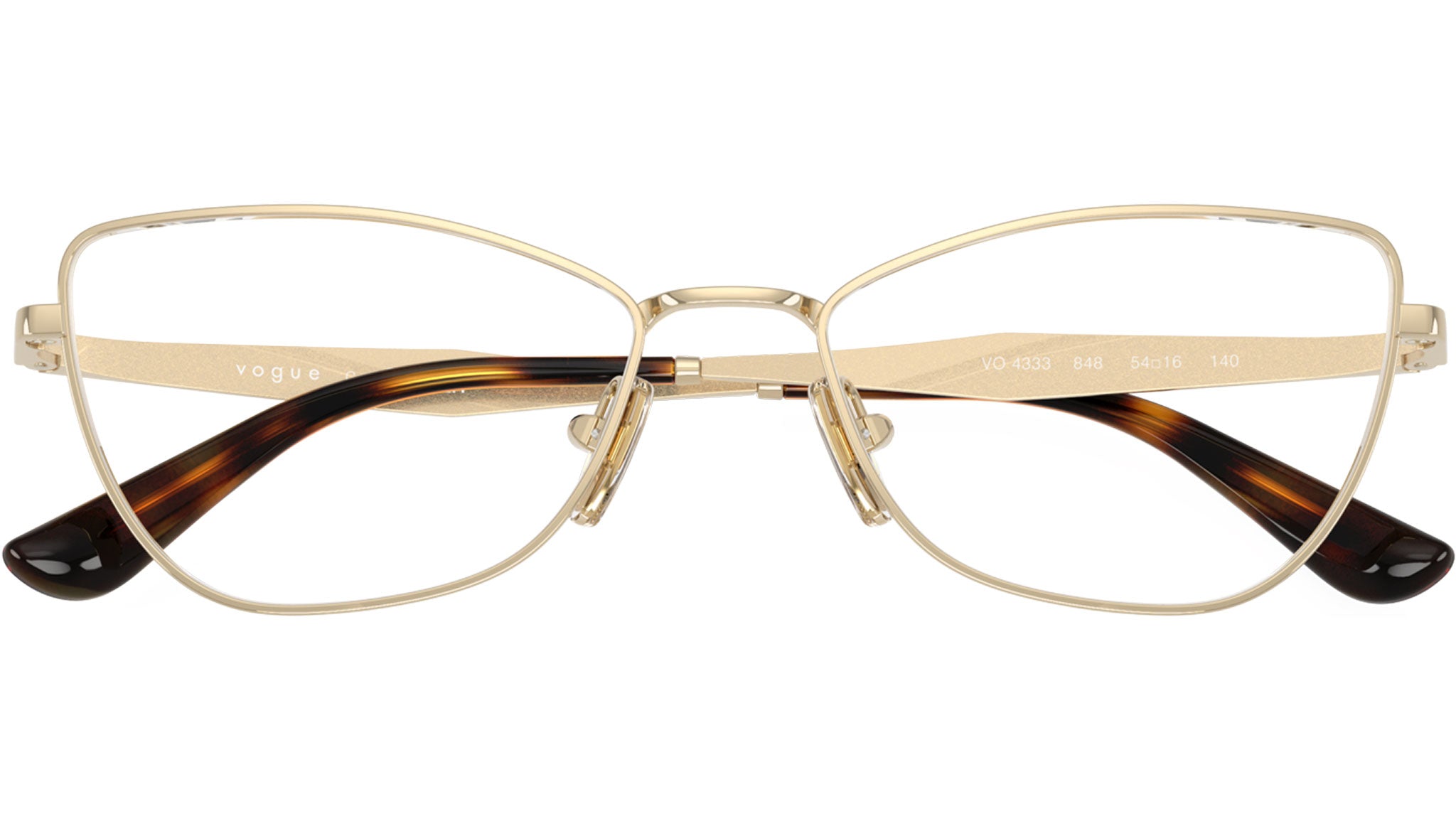 Montatura per occhiali da vista Vogue donna modello VO4333 848 con montatura a farfalla in metallo oro chiaro e lenti demo base 4. Naselli regolabili. Linea: In Vogue. Codice Brand: 0VO4333. Codice colore: 848. Rivenditore autorizzato online Vogue Eyewear. Ogni prodotto Vogue viene consegnato con astuccio originale e accessori ed è coperto da garanzia del produttore di 12 mesi.
