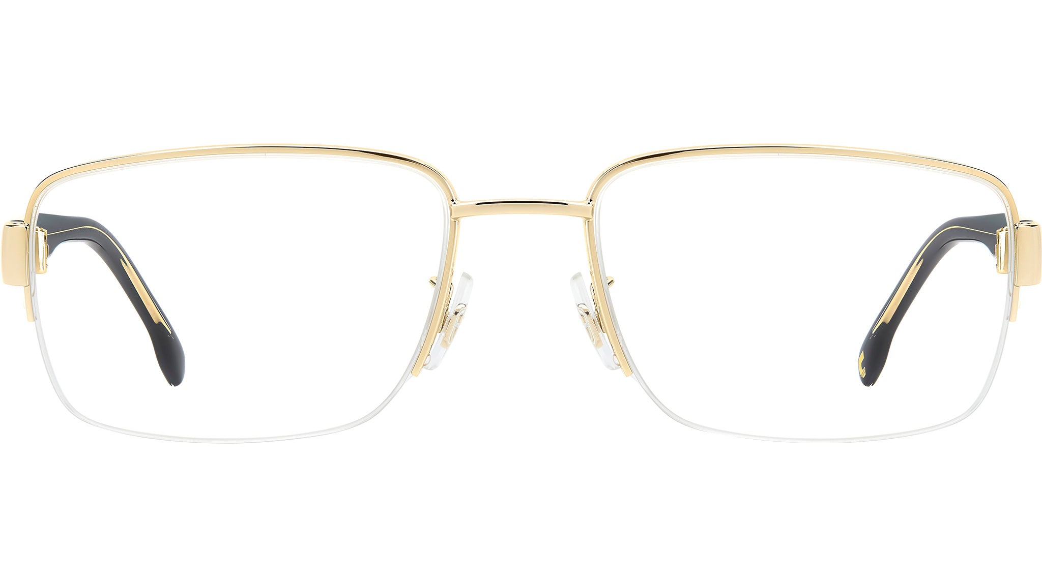 Occhiali da vista Carrera C FLEX 05/G J5G uomo con montatura rettangolare in metallo oro e lenti demo. Linea: Signature. Codice modello: 108076. Codice colore: J5G. Rivenditore autorizzato Carrera online. Gli occhiali vengono consegnati con custodia e accessori originali e sono coperti dalla garanzia ufficiale di 12 mesi del produttore.