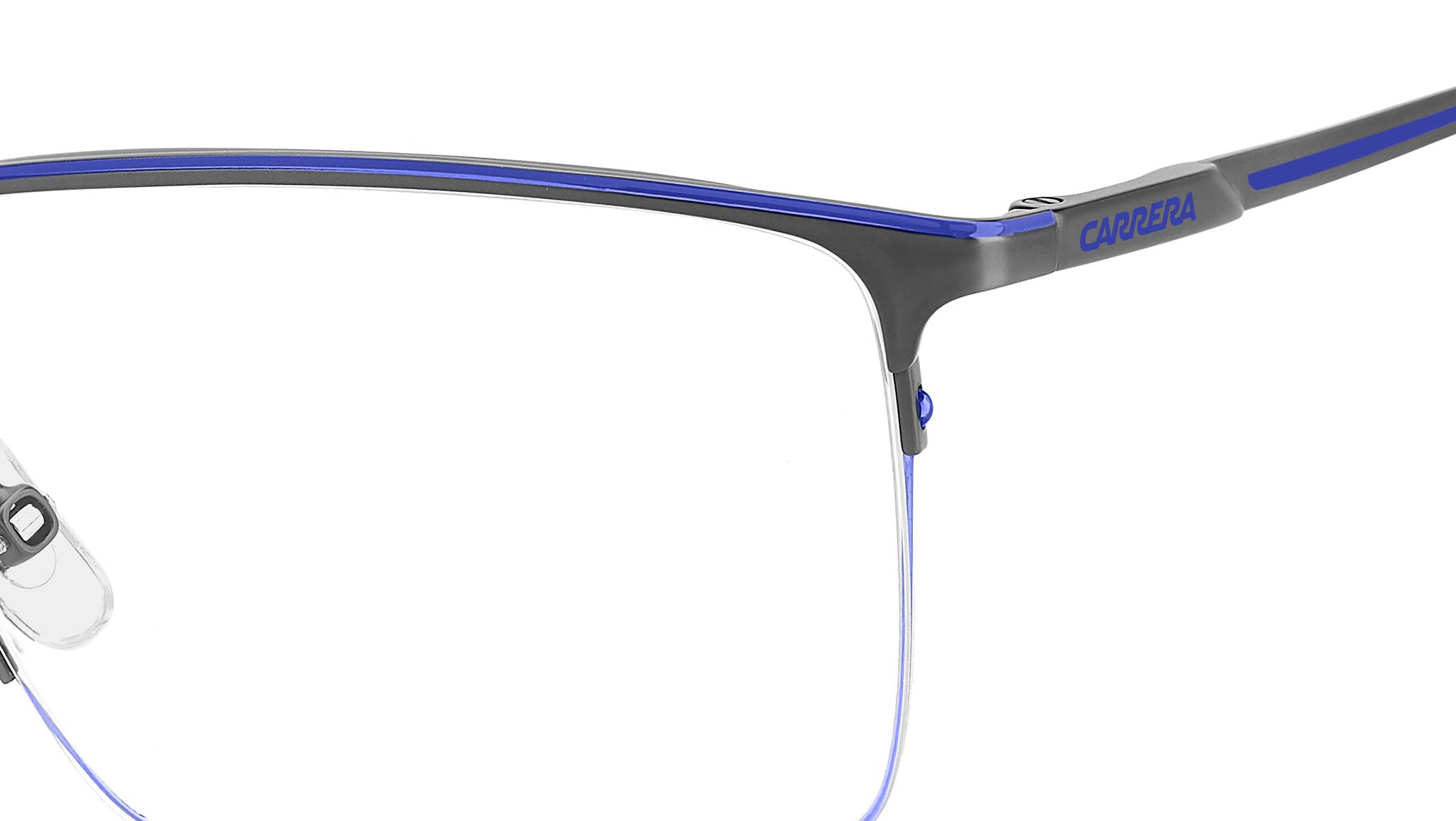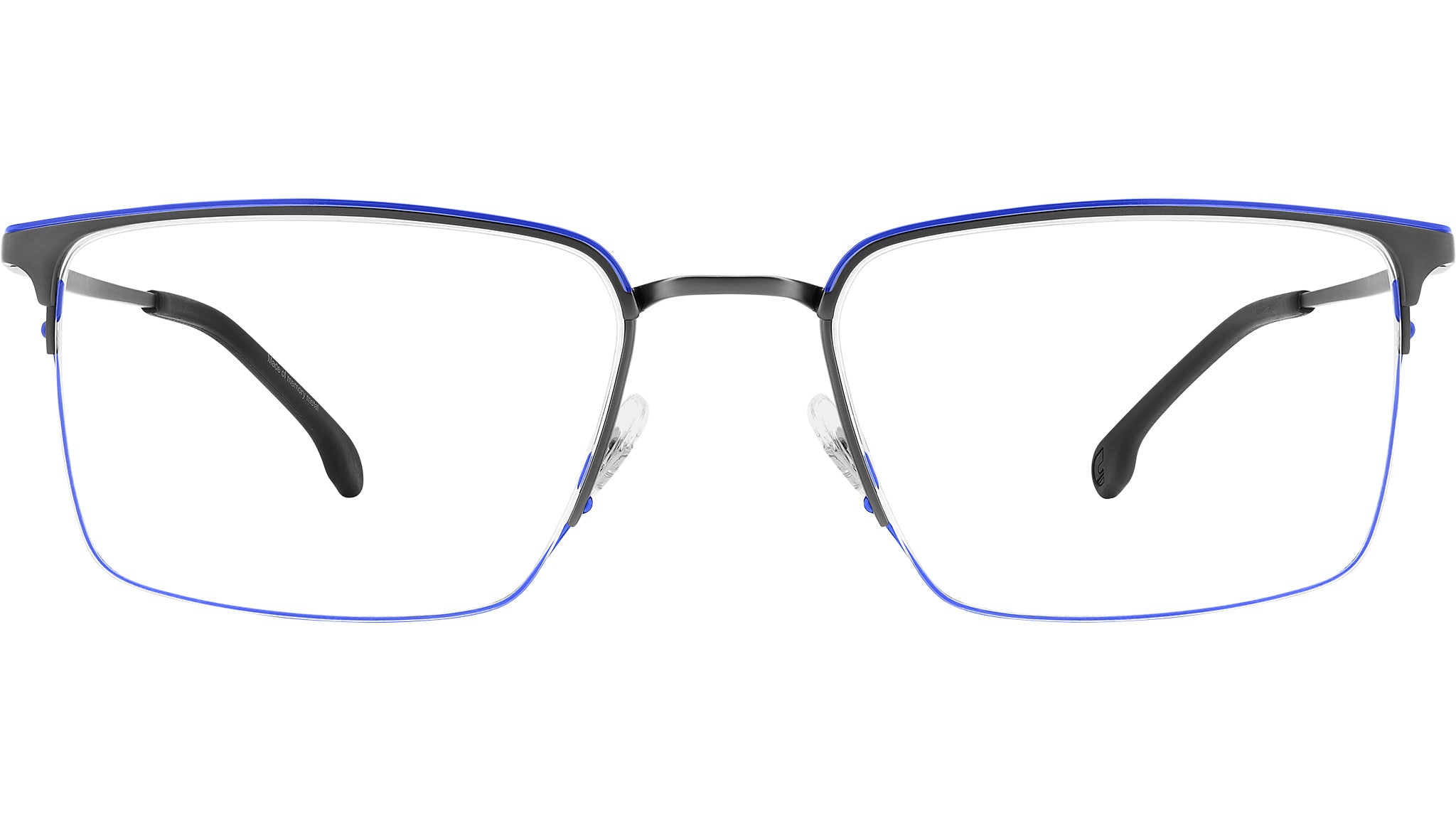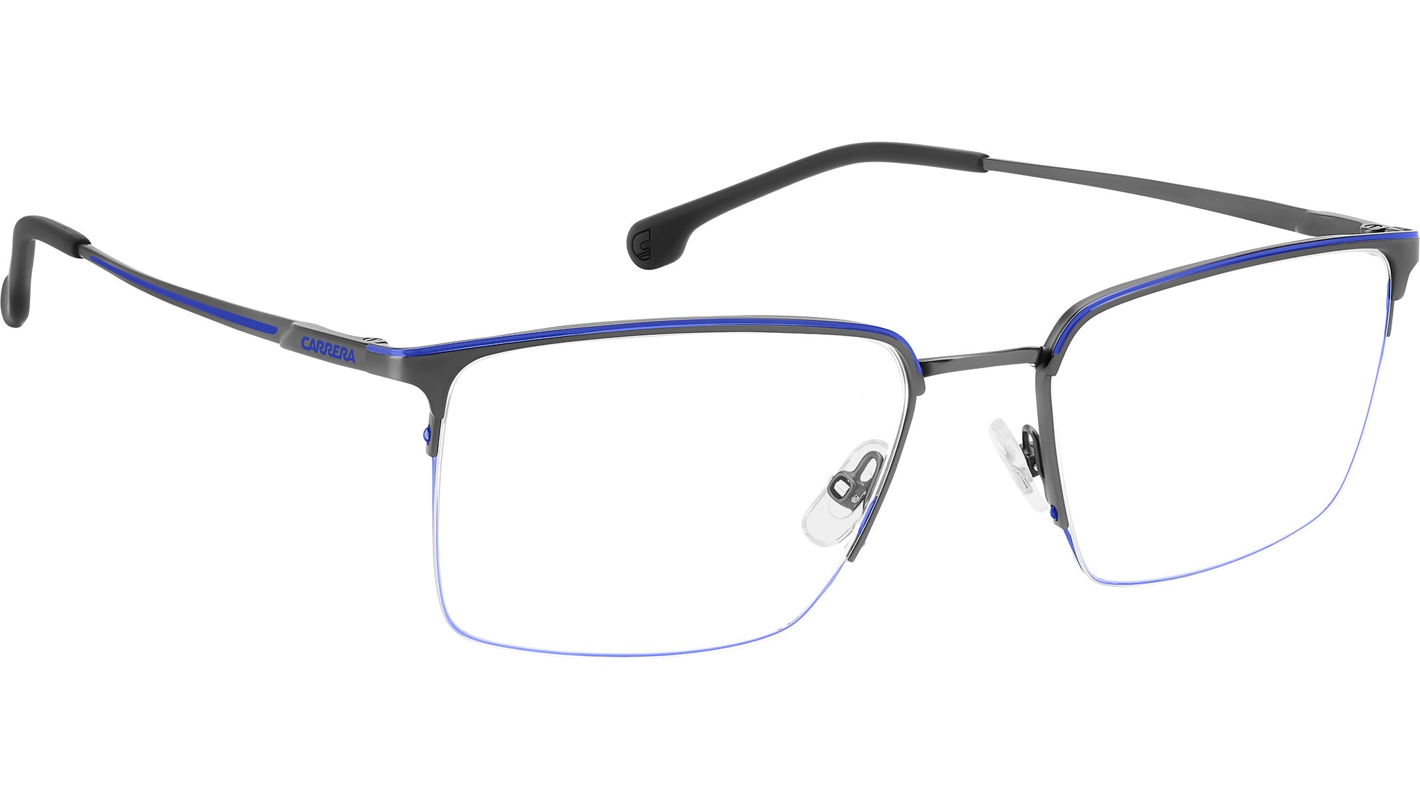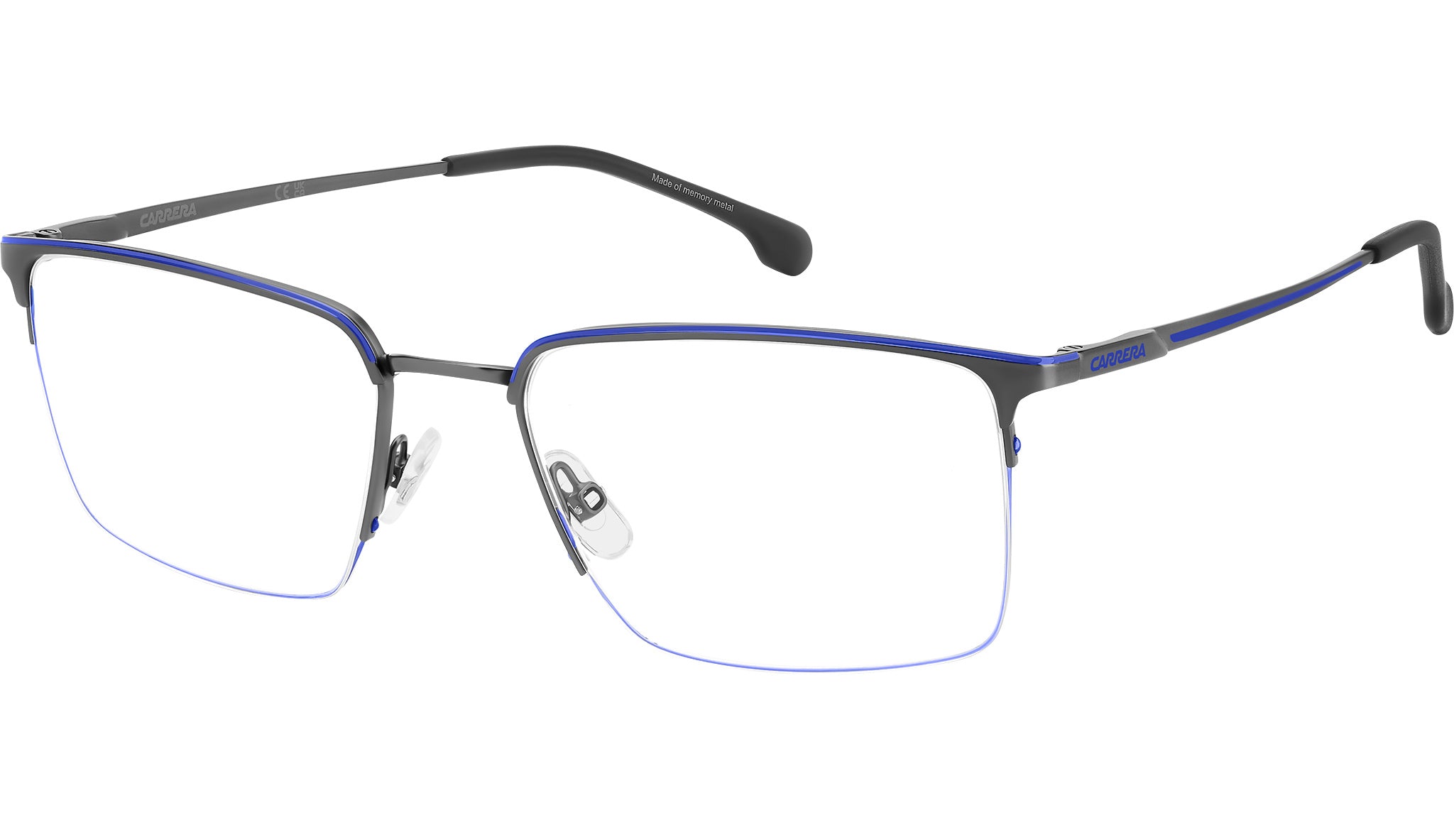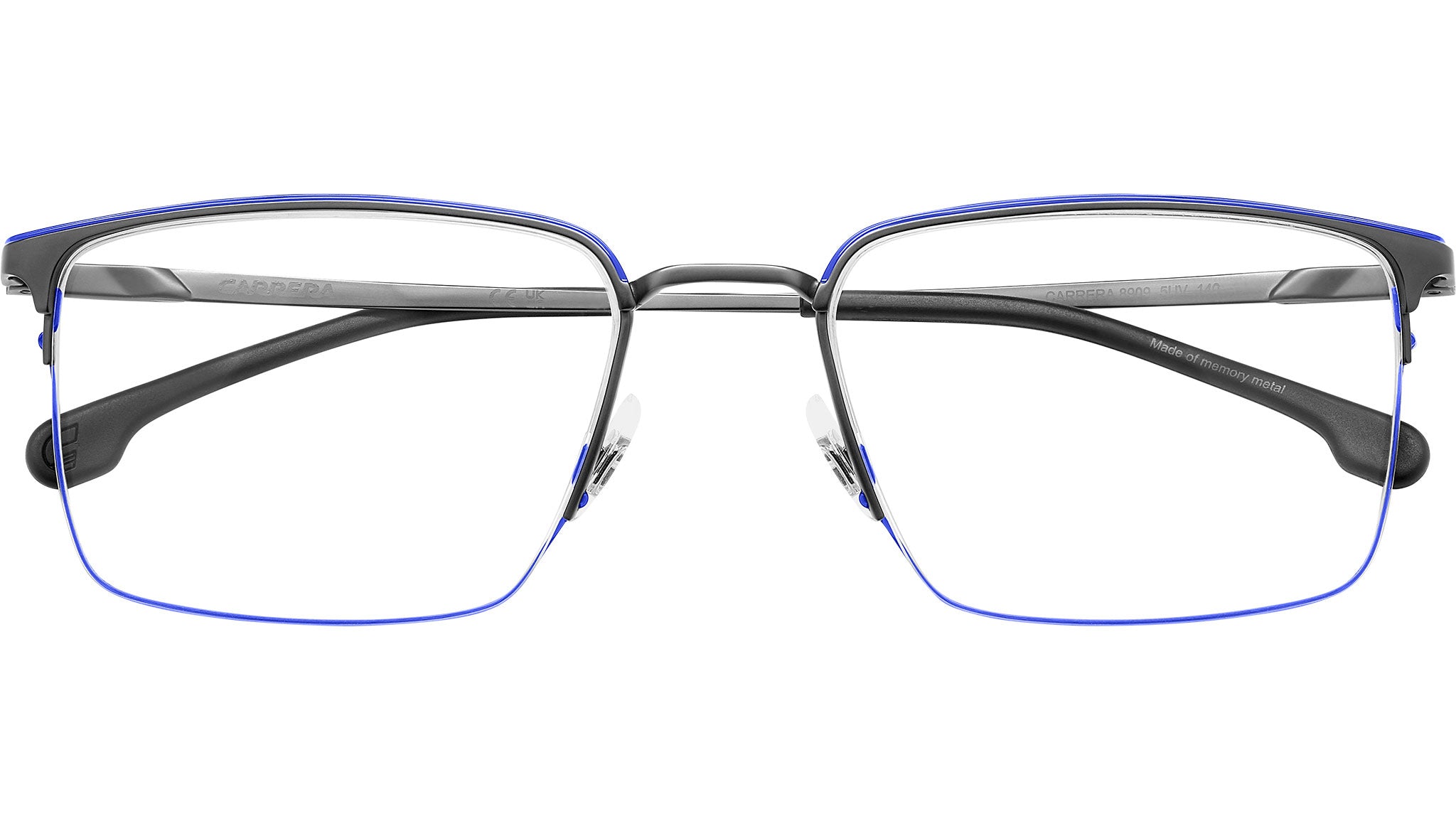 Occhiali da vista Carrera 8909 5UV uomo con montatura rettangolare in metallo blu rutenio scuro e lenti demo. Occhiali da vista Carrera dal design funzionale, ideali per chi cerca uno stile senza compromessi. Il ponte e le aste sono in Memory Metal: possono essere stressati e piegati, e tornano sempre alla forma originale. Le lenti sono sostenute da una montatura in acciaio inossidabile e da un sottile filo di nylor, proposto anche in versione colorata. La flag e il logo Carrera stampati sulle aste firmano il modello. Linea: Sport. Codice modello: 108982. Codice colore: 5UV. Rivenditore autorizzato Carrera online. Gli occhiali vengono consegnati con custodia e accessori originali e sono coperti dalla garanzia ufficiale di 12 mesi del produttore.