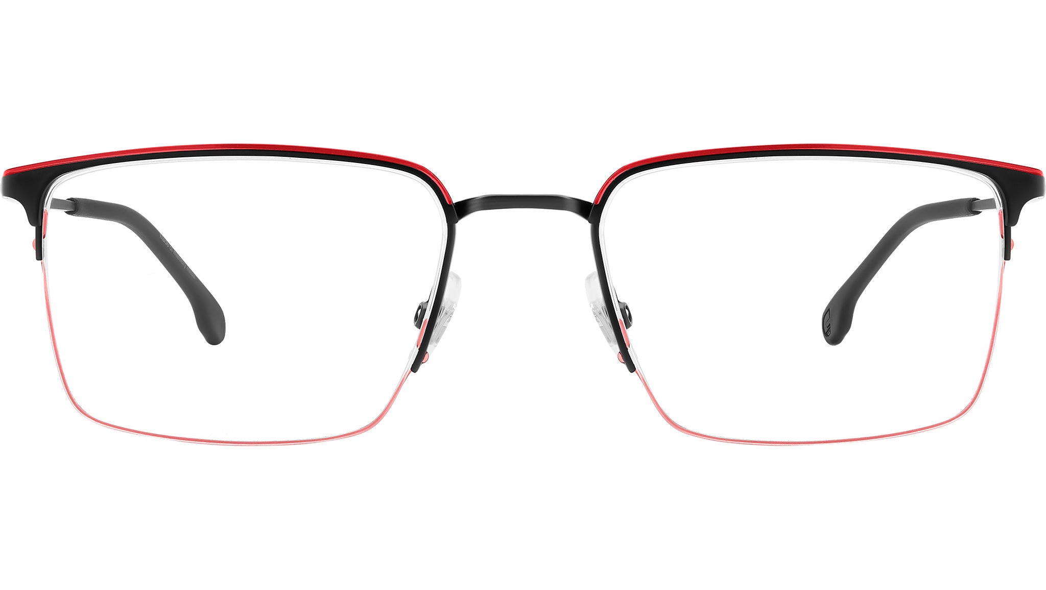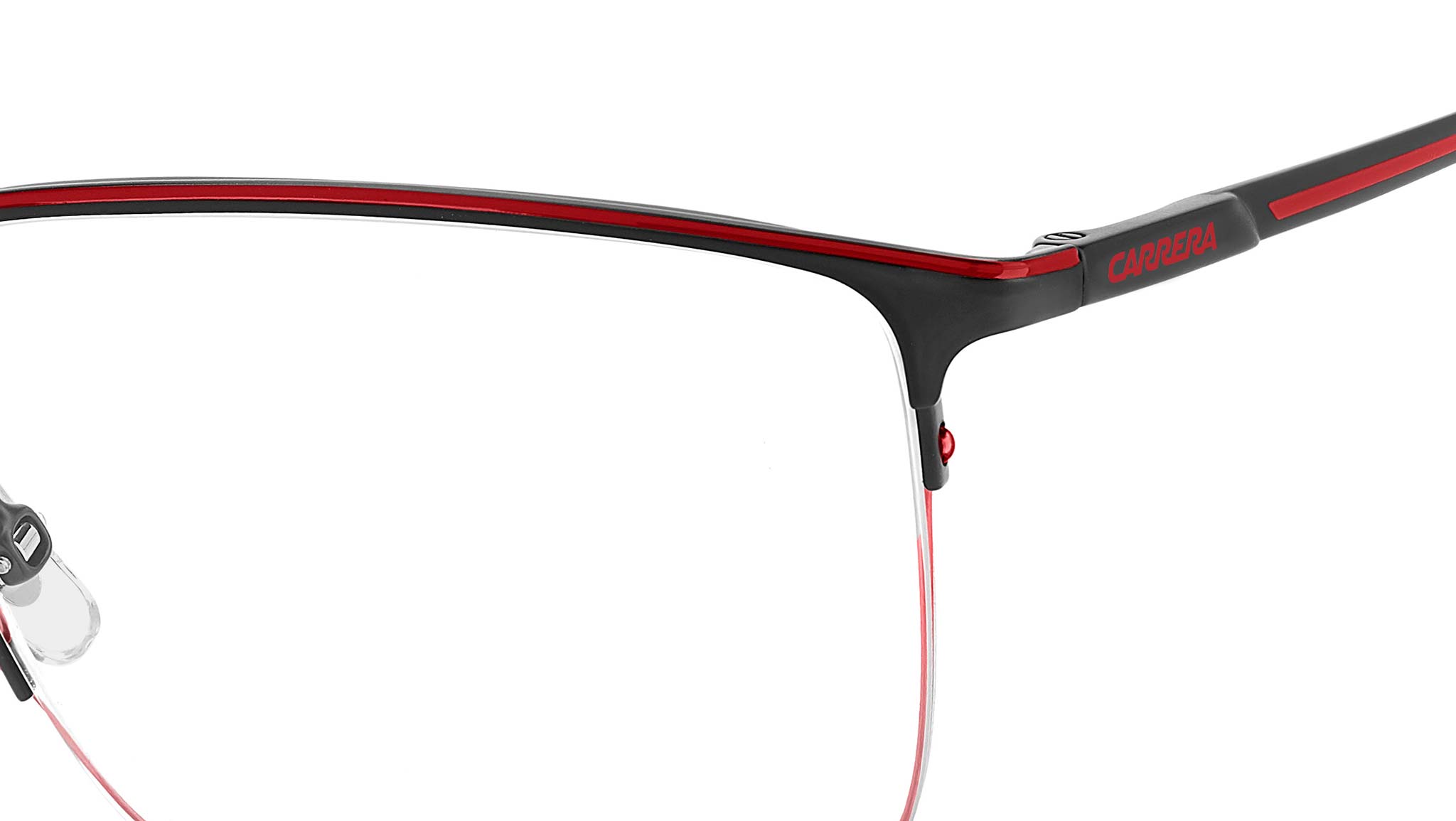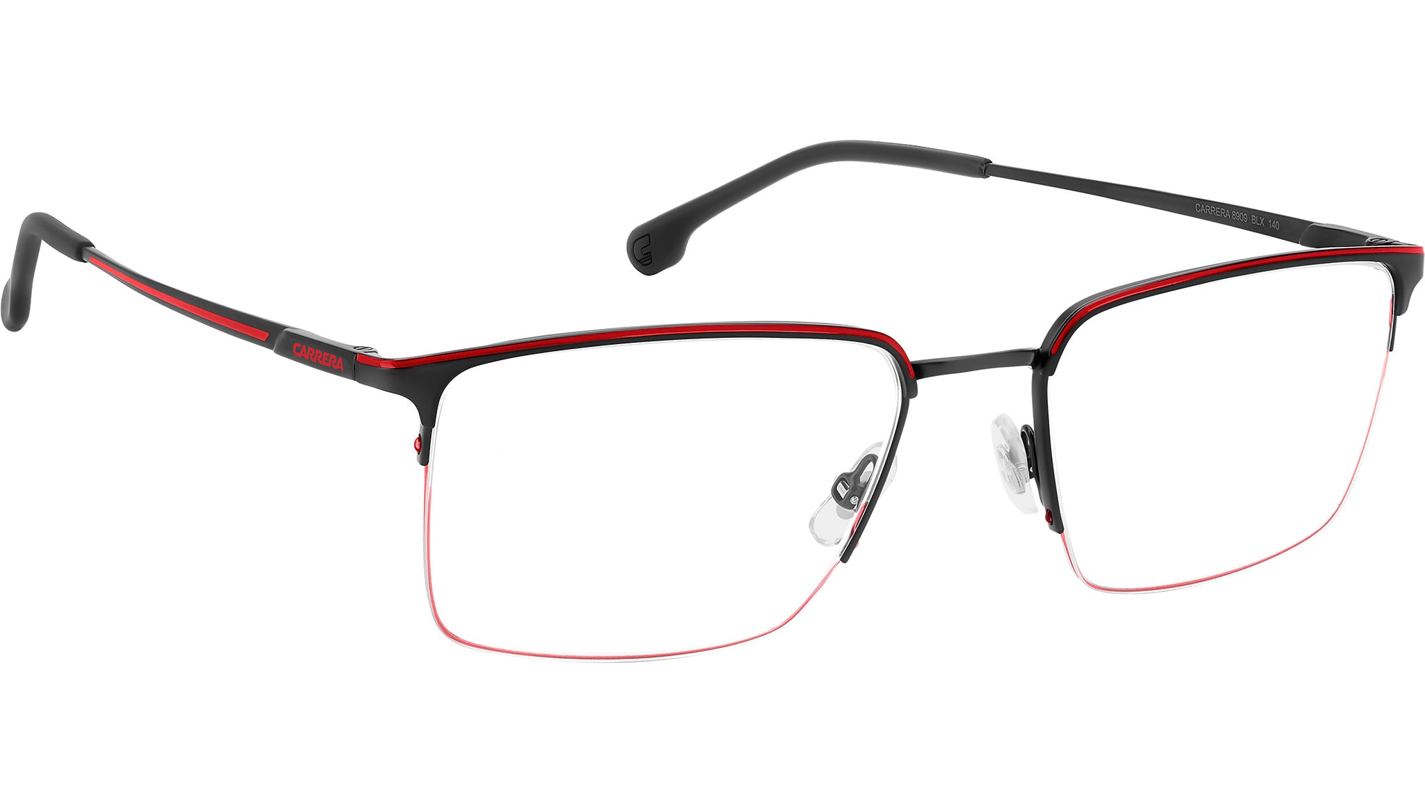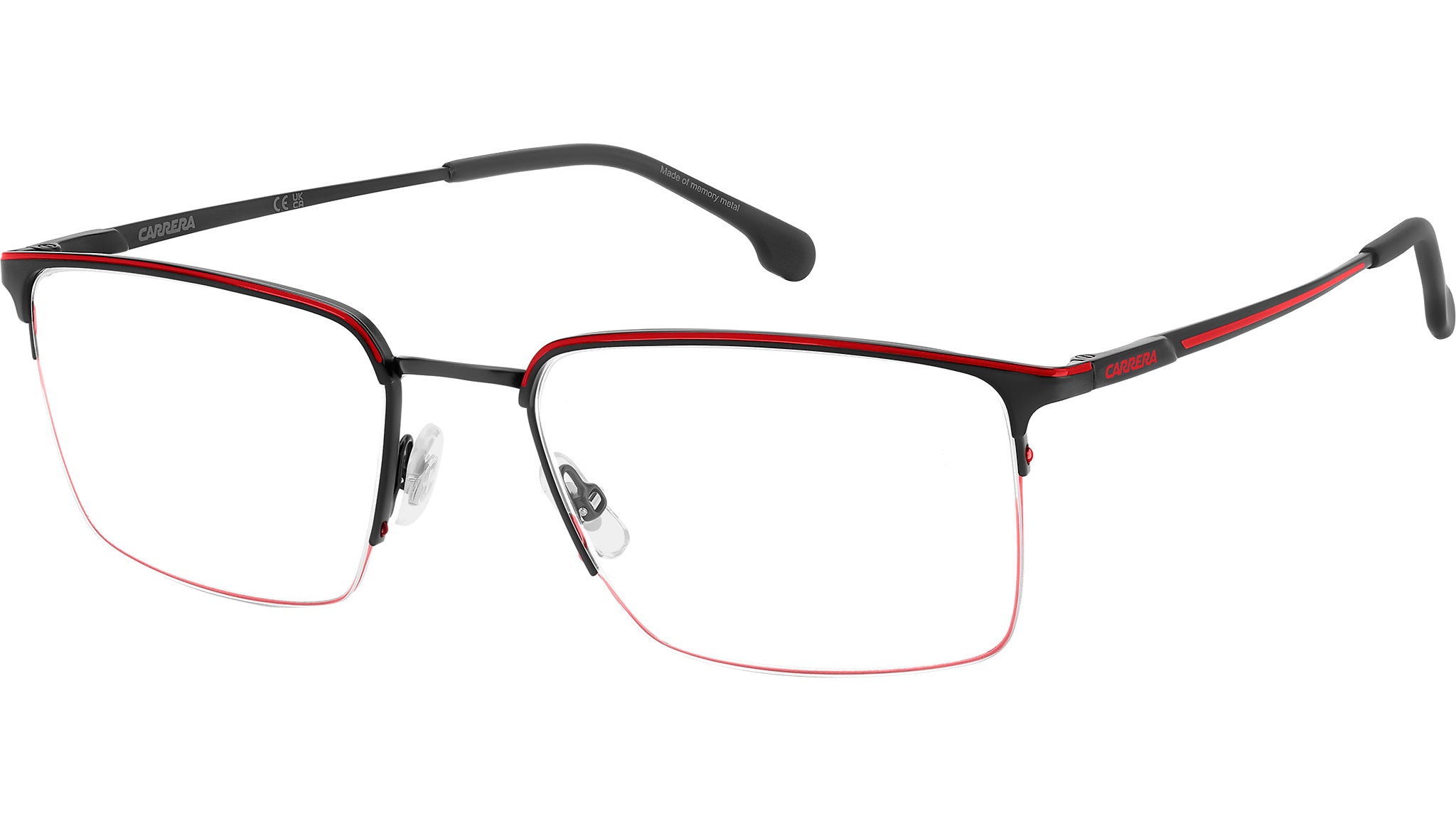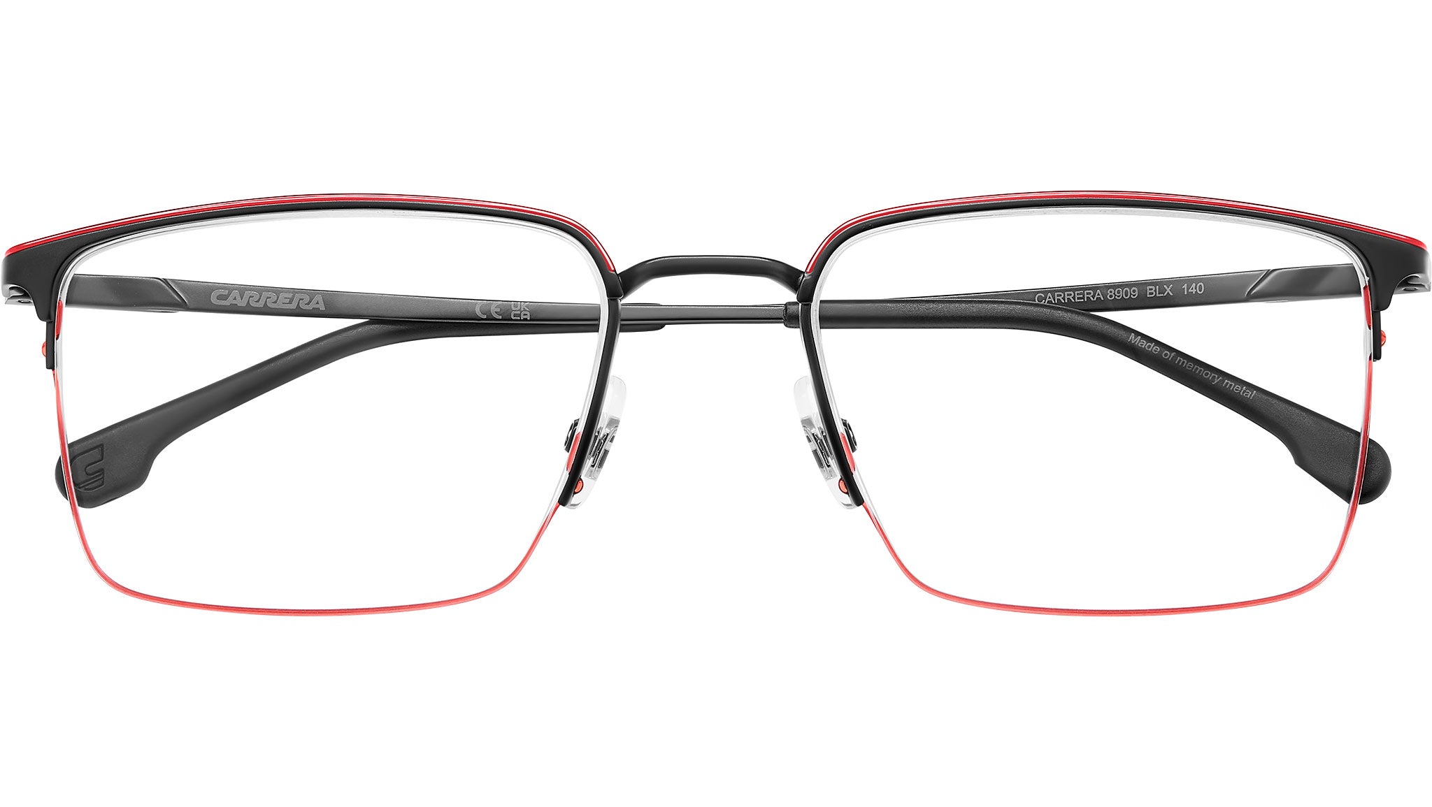 Occhiali da vista Carrera 8909 BLX uomo con montatura rettangolare in metallo nero opaco rosso e lenti demo. Occhiali da vista Carrera dal design funzionale, ideali per chi cerca uno stile senza compromessi. Il ponte e le aste sono in Memory Metal: possono essere stressati e piegati, e tornano sempre alla forma originale. Le lenti sono sostenute da una montatura in acciaio inossidabile e da un sottile filo di nylor, proposto anche in versione colorata. La flag e il logo Carrera stampati sulle aste firmano il modello. Linea: Sport. Codice modello: 108982. Codice colore: BLX. Rivenditore autorizzato Carrera online. Gli occhiali vengono consegnati con custodia e accessori originali e sono coperti dalla garanzia ufficiale di 12 mesi del produttore.
