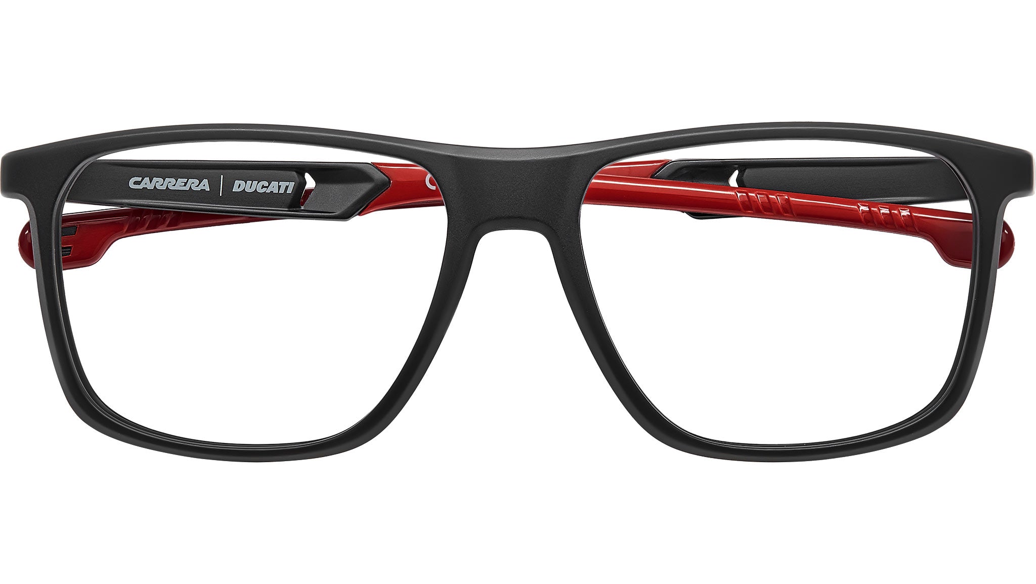 Occhiali da vista Carrera CARDUC 053 003 uomo con montatura rettangolare in nylon nero opaco e lenti demo. Vero stile da campioni per questi occhiali da vista Carrera | Ducati. L’estetica del mondo racing influenza il design, offrendo nuova energia agli outfit quotidiani. Da notare le aste, con prese d’aria ispirate ai deflettori delle moto, realizzate in ultem per una maggiore flessibilità. Impossibile separarsi da questo modello, leggero sul volto e resistente nel tempo. Linea: Elegante. Codice modello: 109362. Codice colore: 003. Rivenditore autorizzato Carrera online. Gli occhiali vengono consegnati con custodia e accessori originali e sono coperti dalla garanzia ufficiale di 12 mesi del produttore.
