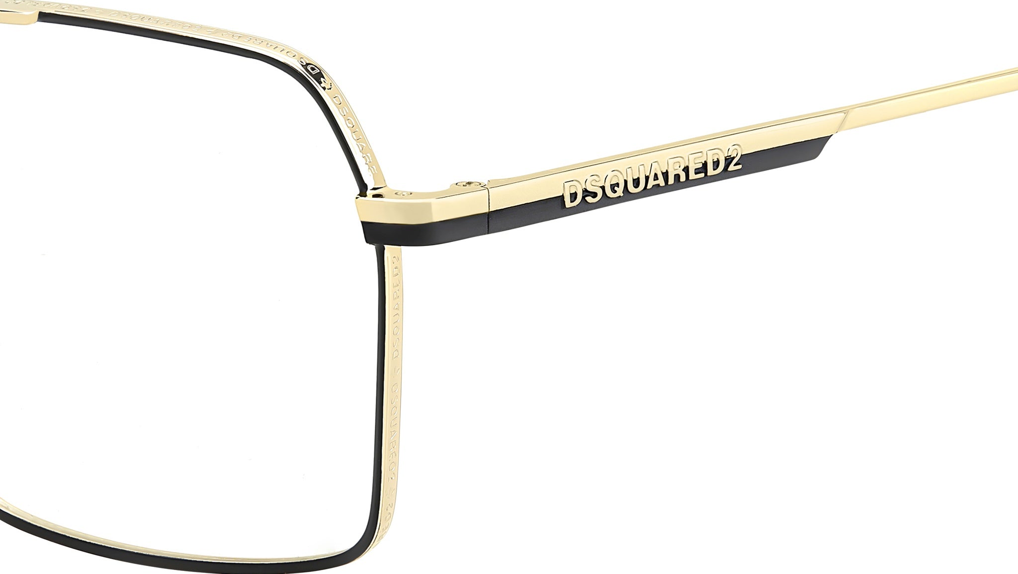 Occhiali da vista Dsquared2 D2 0157 0NZ uomo con montatura rettangolare in metallo oro nero opaco e lenti demo. Gli occhiali da vista in metallo sono di tendenza e Dsquared2 ne propone la sua interpretazione. Il frontale con doppio ponte è leggermente oversize, impreziosito dal motivo Dsquared2 inciso sul profilo che abbraccia le lenti. Inedito il design sfalsato delle aste ispirato ai doppi rivetti tipici del brand - con finish lucido e opaco e logo in rilievo. Disponibile in tre colorazioni, tra cui quella con profilo nero a contrasto su frontale e aste. Linea: Hype. Codice modello: 109378. Codice colore: 0NZ. Rivenditore autorizzato Dsquared2 online. Gli occhiali vengono consegnati con custodia e accessori originali e sono coperti dalla garanzia ufficiale di 12 mesi del produttore.