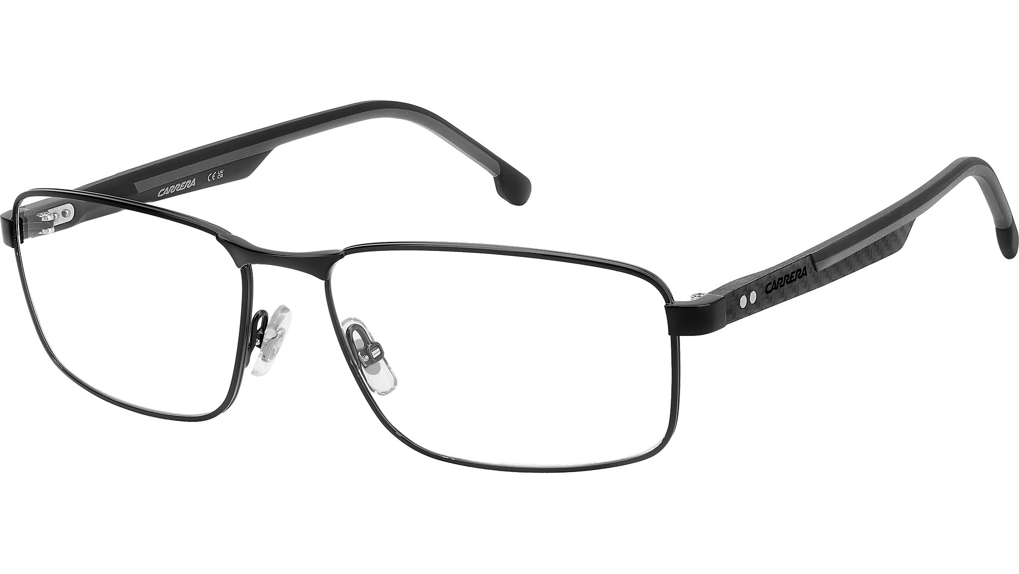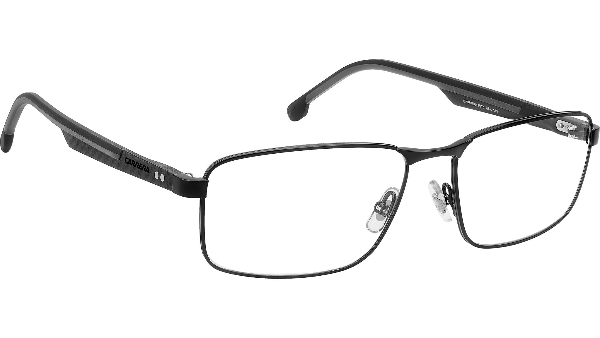 Occhiali da vista Carrera 8913 08A uomo con montatura rettangolare in metallo nero grigio e lenti demo. Carrera sceglie la fibra di carbonio per un occhiale da vista di qualità premium. Applica questo materiale leggero e resistente alle aste silm con design texturizzato. Aumentano il comfort i terminali gommati, con colorazione a contrasto oppure tono su tono. Lo sguardo è fisso sul traguardo dei propri obbietti, vestito dal frontale rettangolare in leggero acciaio inossidabile con naselli regolabili. Per uno stile concreto, senza fronzoli né distrazioni. Linea: Sport. Codice modello: 109526. Codice colore: 08A. Rivenditore autorizzato Carrera online. Gli occhiali vengono consegnati con custodia e accessori originali e sono coperti dalla garanzia ufficiale di 12 mesi del produttore.