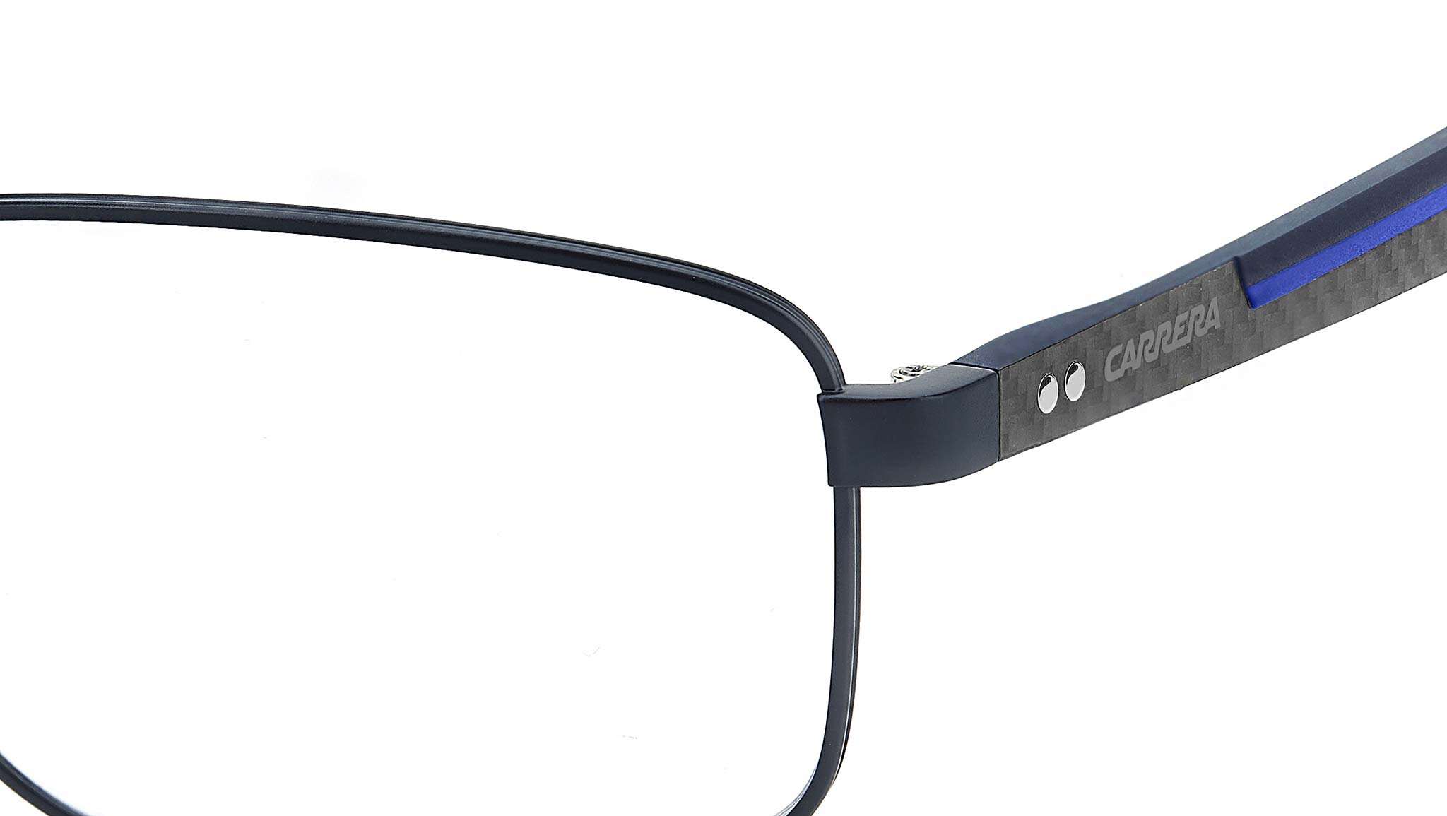 Occhiali da vista Carrera 8913 PJP uomo con montatura rettangolare in metallo blu e lenti demo. Carrera sceglie la fibra di carbonio per un occhiale da vista di qualità premium. Applica questo materiale leggero e resistente alle aste silm con design texturizzato. Aumentano il comfort i terminali gommati, con colorazione a contrasto oppure tono su tono. Lo sguardo è fisso sul traguardo dei propri obbietti, vestito dal frontale rettangolare in leggero acciaio inossidabile con naselli regolabili. Per uno stile concreto, senza fronzoli né distrazioni. Linea: Sport. Codice modello: 109526. Codice colore: PJP. Rivenditore autorizzato Carrera online. Gli occhiali vengono consegnati con custodia e accessori originali e sono coperti dalla garanzia ufficiale di 12 mesi del produttore.