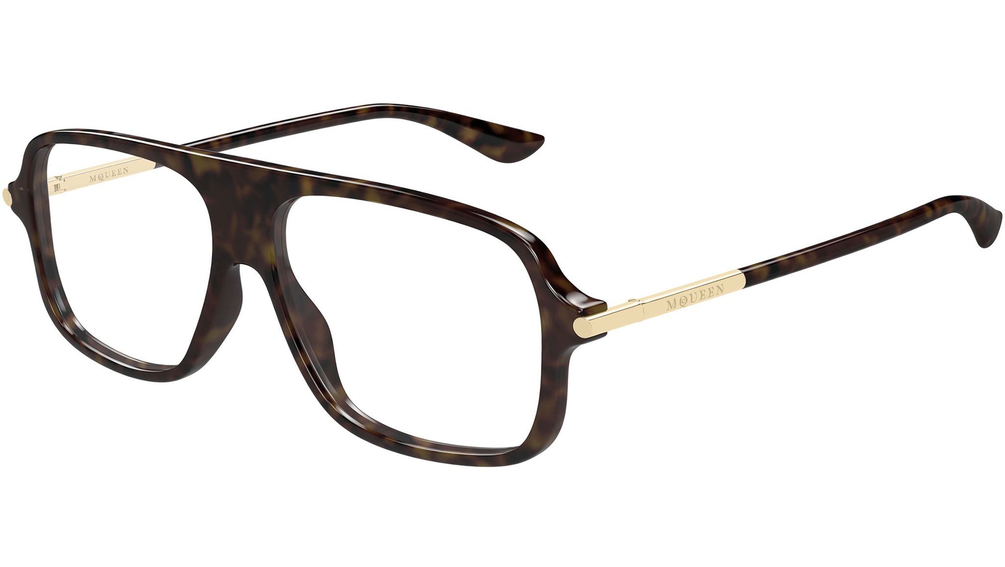 Occhiali da vista Alexander McQueen AM0555O 002 unisex con montatura aviatore in acetato riciclato avana scuro lucido e lenti demo. Linea: T-Bar. Codice modello: AM0555O. Codice colore: 002. Made in Japan. Rivenditore autorizzato Alexander McQueen online. Gli occhiali vengono consegnati con custodia e accessori originali e sono coperti dalla garanzia ufficiale di 12 mesi del produttore.