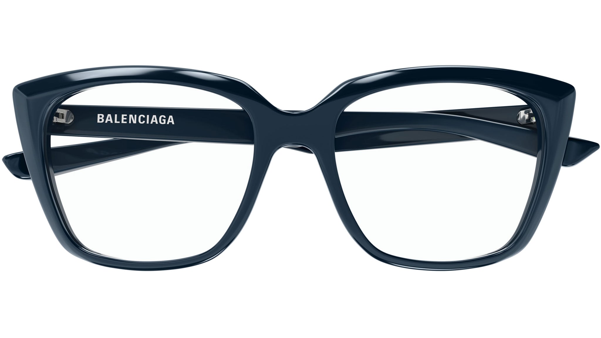 Occhiali da vista Balenciaga BB0062O 007 donna con montatura cat eye in acetato blu lucido tinta unita e lenti demo. Linea: Everyday. Codice modello: BB0062O. Codice colore: 007. Made in Italy. Rivenditore autorizzato Balenciaga online. Gli occhiali vengono consegnati con custodia e accessori originali e sono coperti dalla garanzia ufficiale di 12 mesi del produttore.