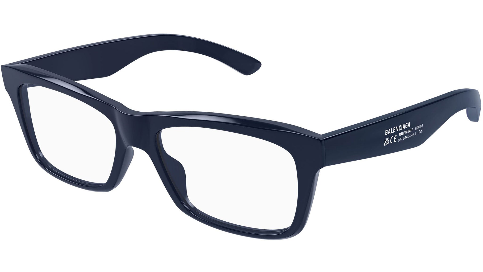 Occhiali da vista Balenciaga BB0426O 005 uomo con montatura rettangolare in acetato riciclato blu lucido solido e lenti demo. Linea: Everyday. Codice modello: BB0426O. Codice colore: 005. Made in Italy. Rivenditore autorizzato Balenciaga online. Gli occhiali vengono consegnati con custodia e accessori originali e sono coperti dalla garanzia ufficiale di 12 mesi del produttore.