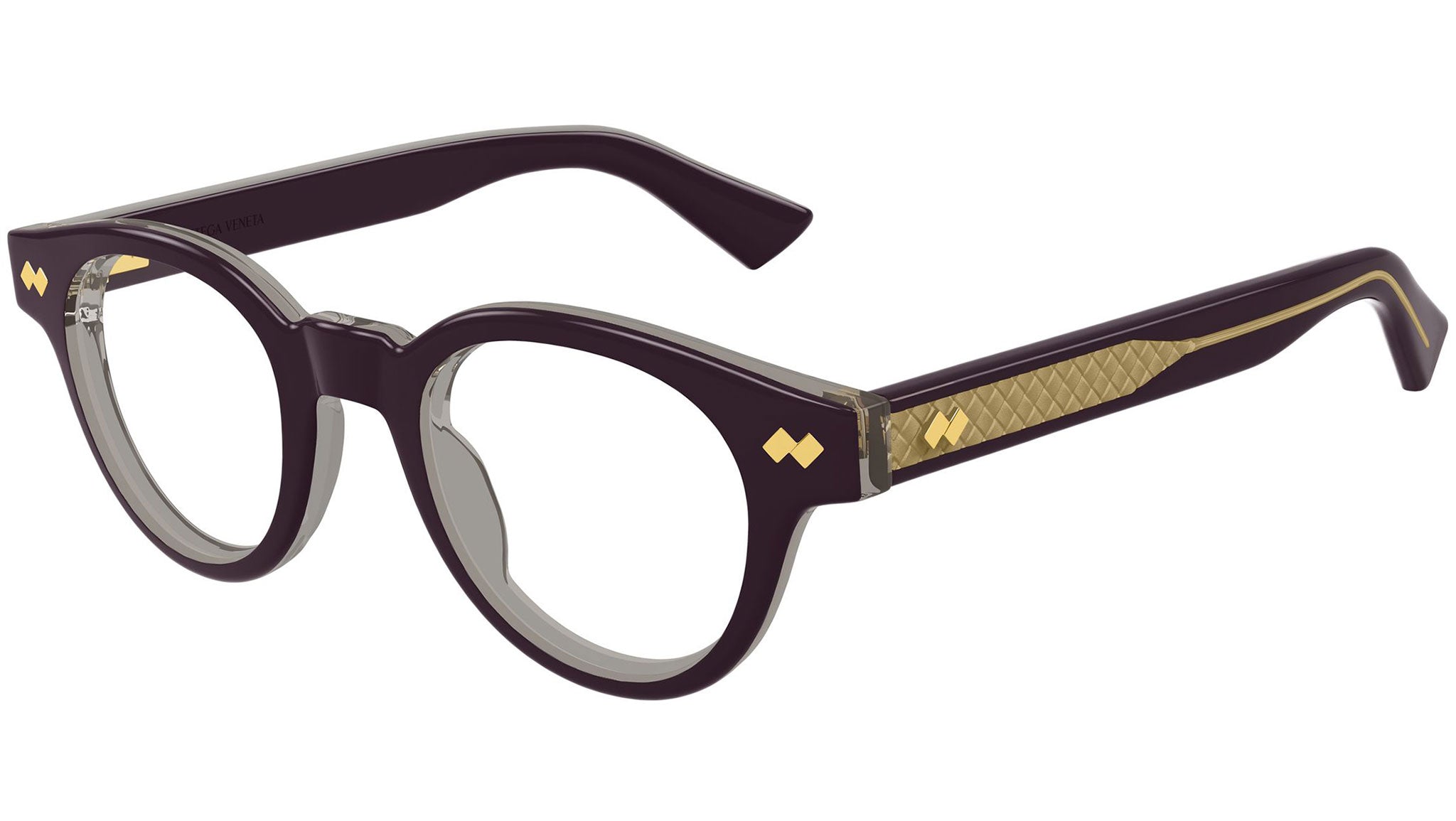 Occhiali da vista Bottega Veneta BV1443O 004 unisex con montatura pantos in acetato riciclato viola solido bilayer grigio trasparente e lenti demo. Linea: Intrecciato. Codice modello: BV1443O. Codice colore: 004. Made in Japan. Rivenditore autorizzato Bottega Veneta online. Gli occhiali vengono consegnati con custodia e accessori originali e sono coperti dalla garanzia ufficiale di 12 mesi del produttore.