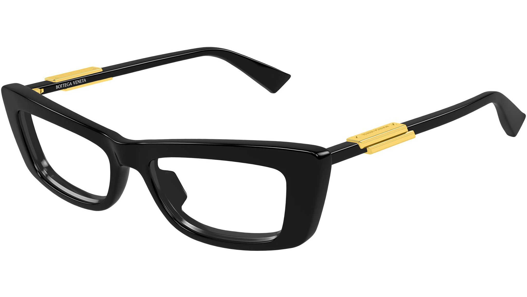 Occhiali da vista Bottega Veneta BV1449O donna con montatura rettangolare in acetato riciclato nero lucido tinta unita e lenti demo. Linea: Ribbon. Codice modello: BV1449O. Codice colore 55 mm: 006. 52 mm: 002. Made in Italy. Rivenditore autorizzato Bottega Veneta online. Gli occhiali vengono consegnati con custodia e accessori originali e sono coperti dalla garanzia ufficiale di 12 mesi del produttore.