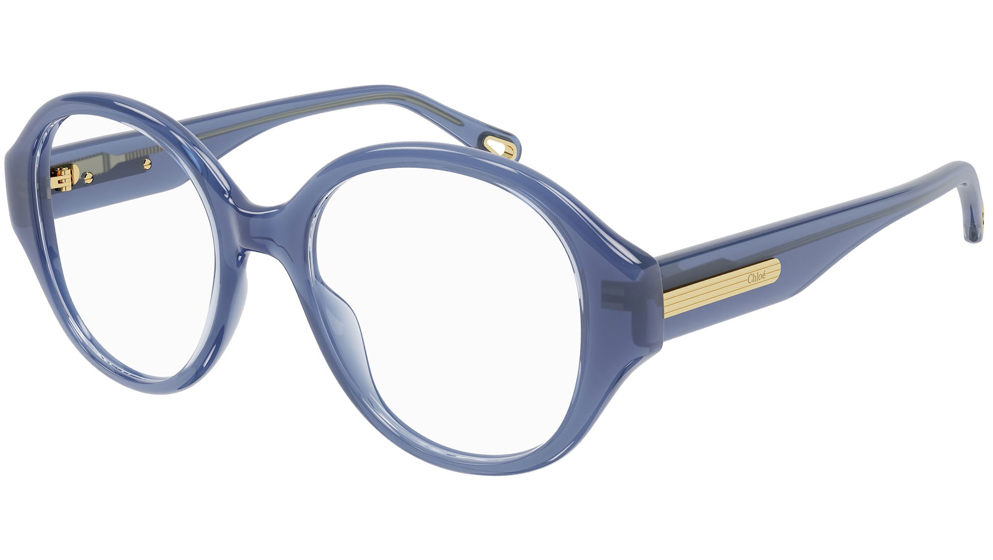 Chloé eyeglasses model CH0123O color variant 004 shiny opaline blue with blue temples.