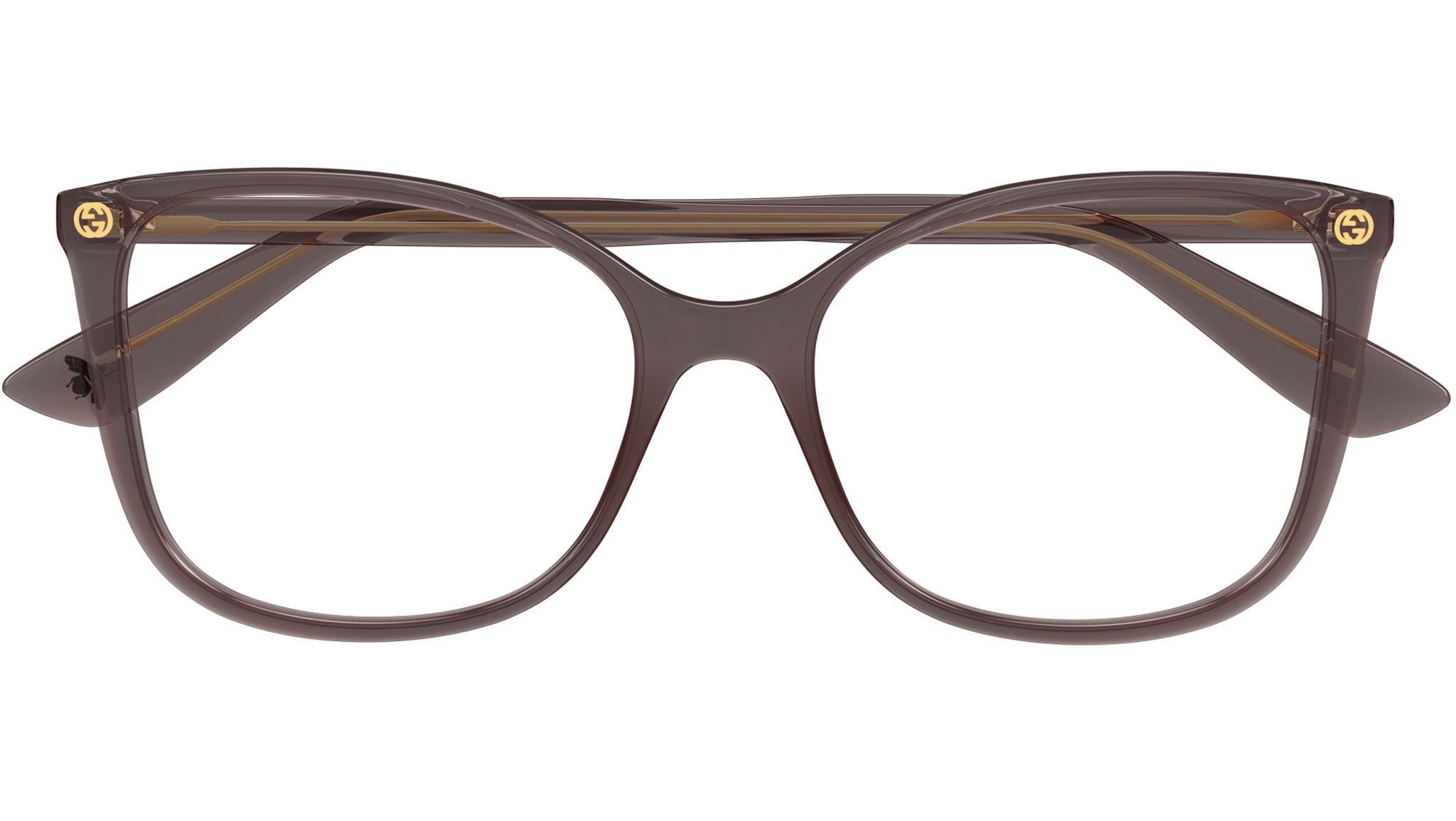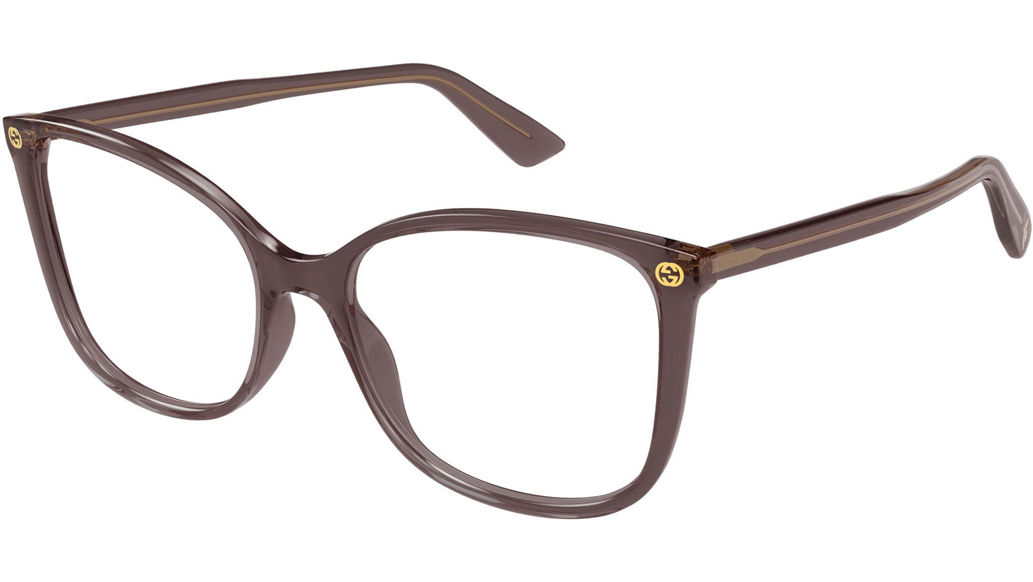 Gucci eyeglasses model GG0026O Lettering line in acetate cat shape color code 019 brown taupe transparent shiny with brown temples and demo lenses. Authorized Gucci online dealer. The glasses are delivered with original case and accessories and are covered by the official 12-month manufacturer's warranty.