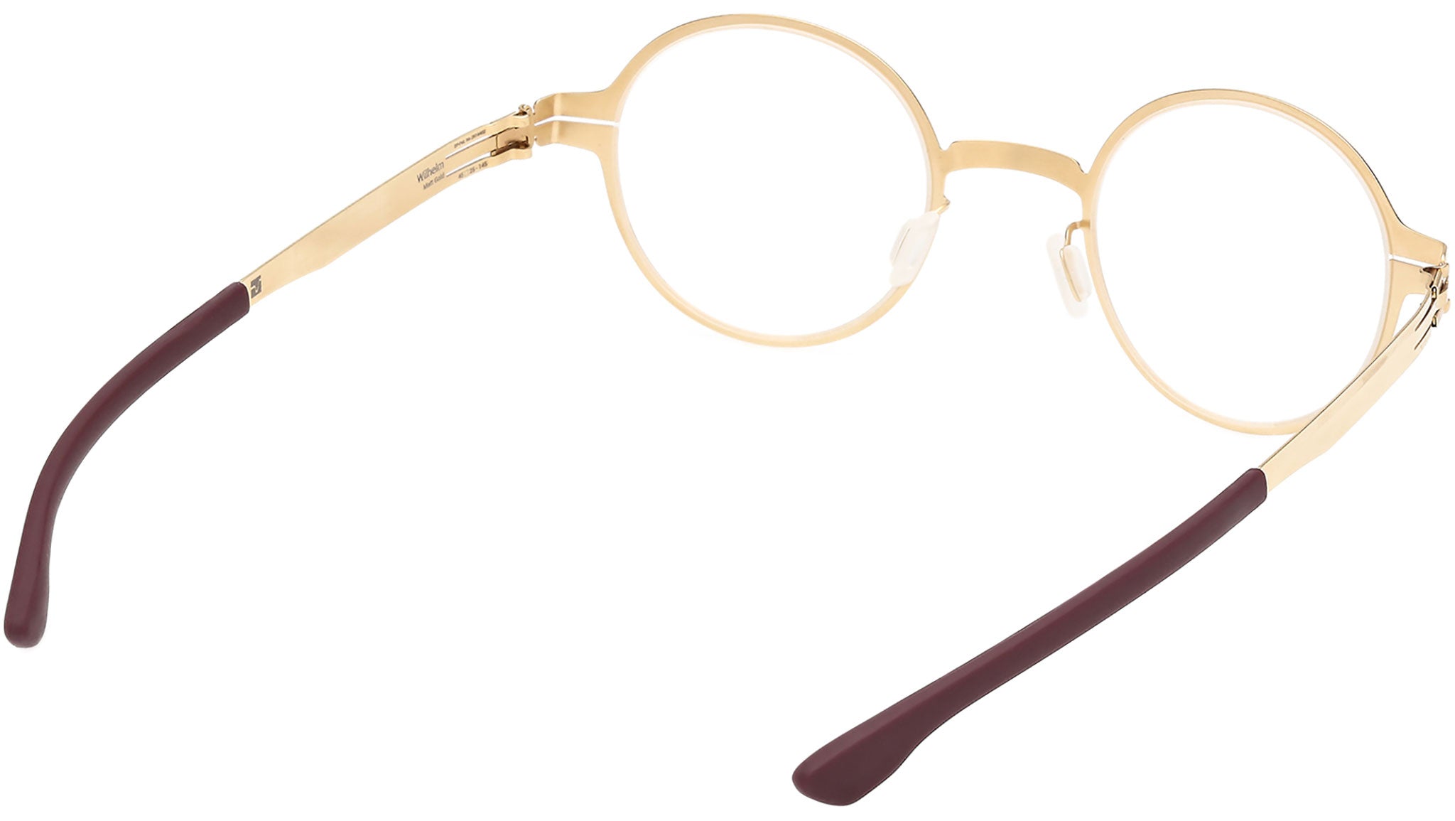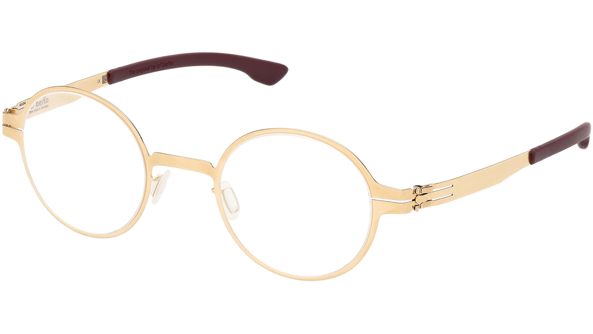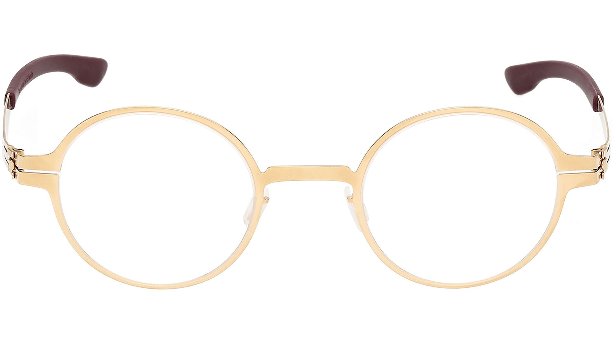 Occhiali da vista ic! berlin unisex modello Wilhelm IC5069 con montatura rotonda full-rim in metallo oro intenso opaco e lenti demo. Codice Brand: IC5069. Codice colore: 031. Rivenditore autorizzato ic! berlin online. Gli occhiali vengono consegnati con custodia e accessori originali e sono coperti da garanzia standard di 12 mesi del produttore.