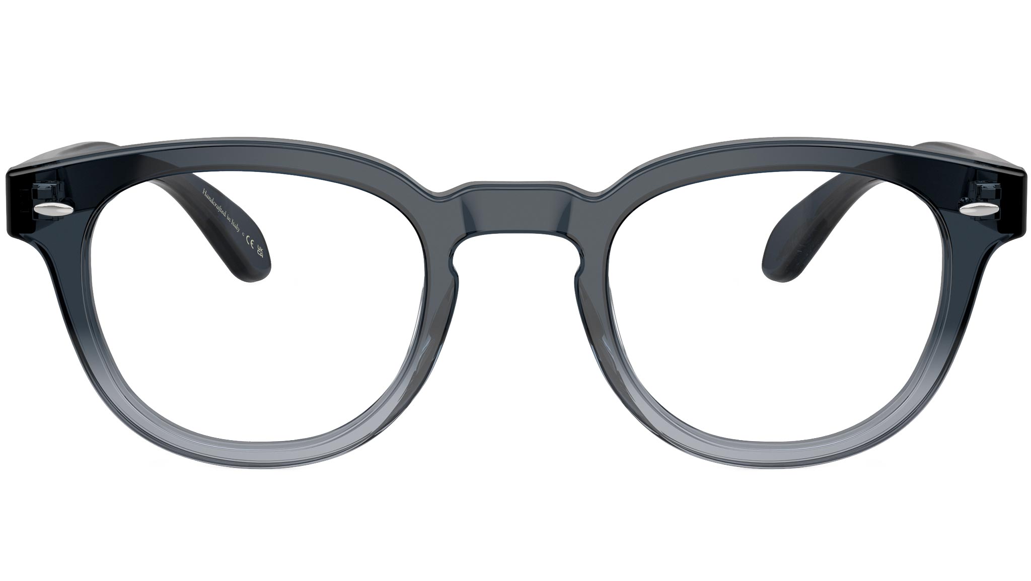 Oliver Peoples unisex eyeglasses model 5036 with navy blue gradient full rim acetate frame and base 4 demo lenses. High bridge fit. Line: Archive. Model code: OV5036. Color code: 1777. Authorized Oliver Peoples dealer. Every Oliver Peoples product comes with the original case and accessories and is covered by a 12 month manufacturer's warranty.