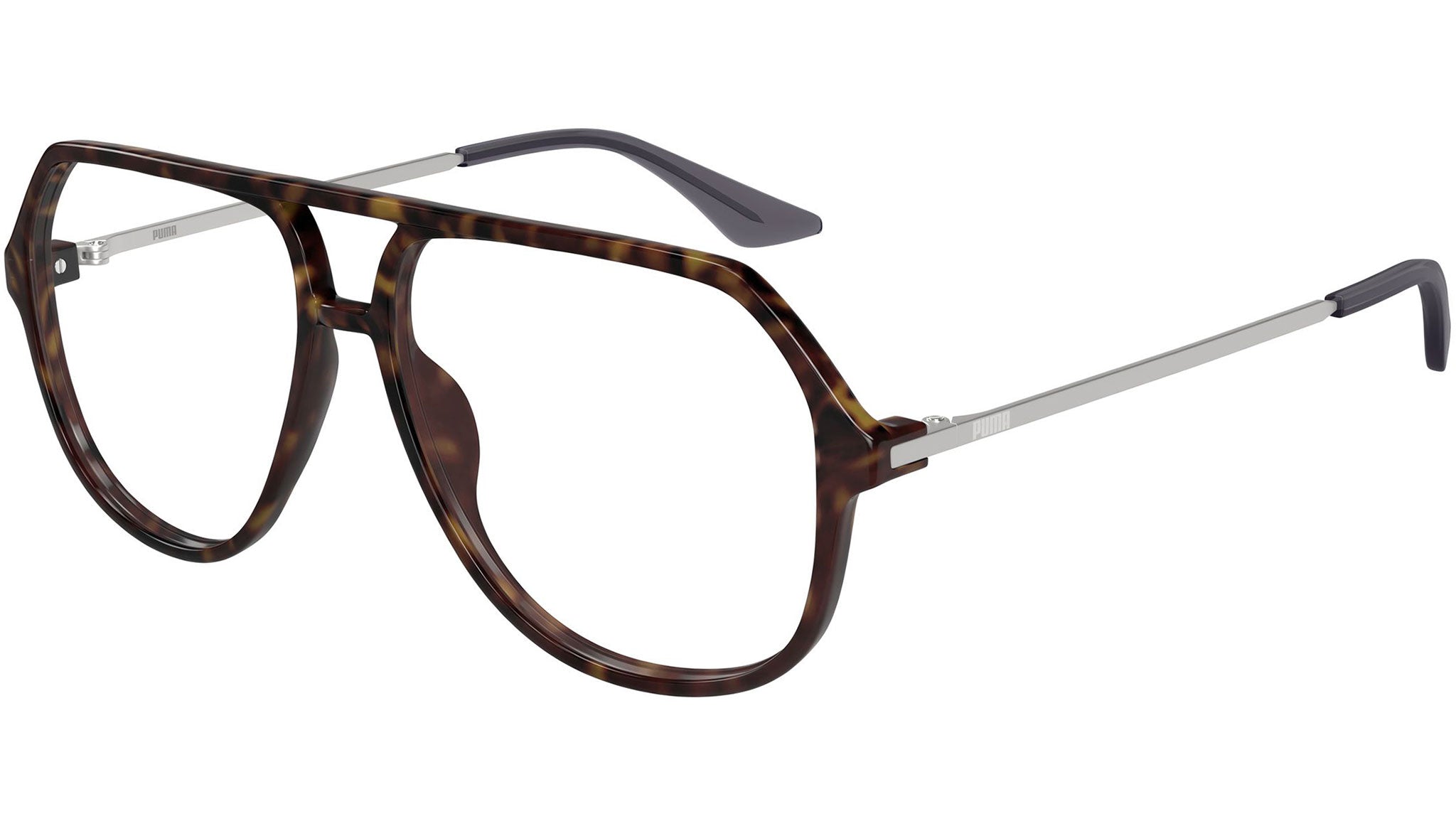 Occhiali da vista Puma PU0460O 002 uomo con montatura aviatore in inietatto avana scuro lucido e lenti demo. Linea: Nostalgia. Codice modello: PU0460O. Codice colore: 002. Rivenditore autorizzato Puma Eyewear online. Gli occhiali vengono consegnati con custodia e accessori originali e sono coperti dalla garanzia ufficiale di 12 mesi del produttore.