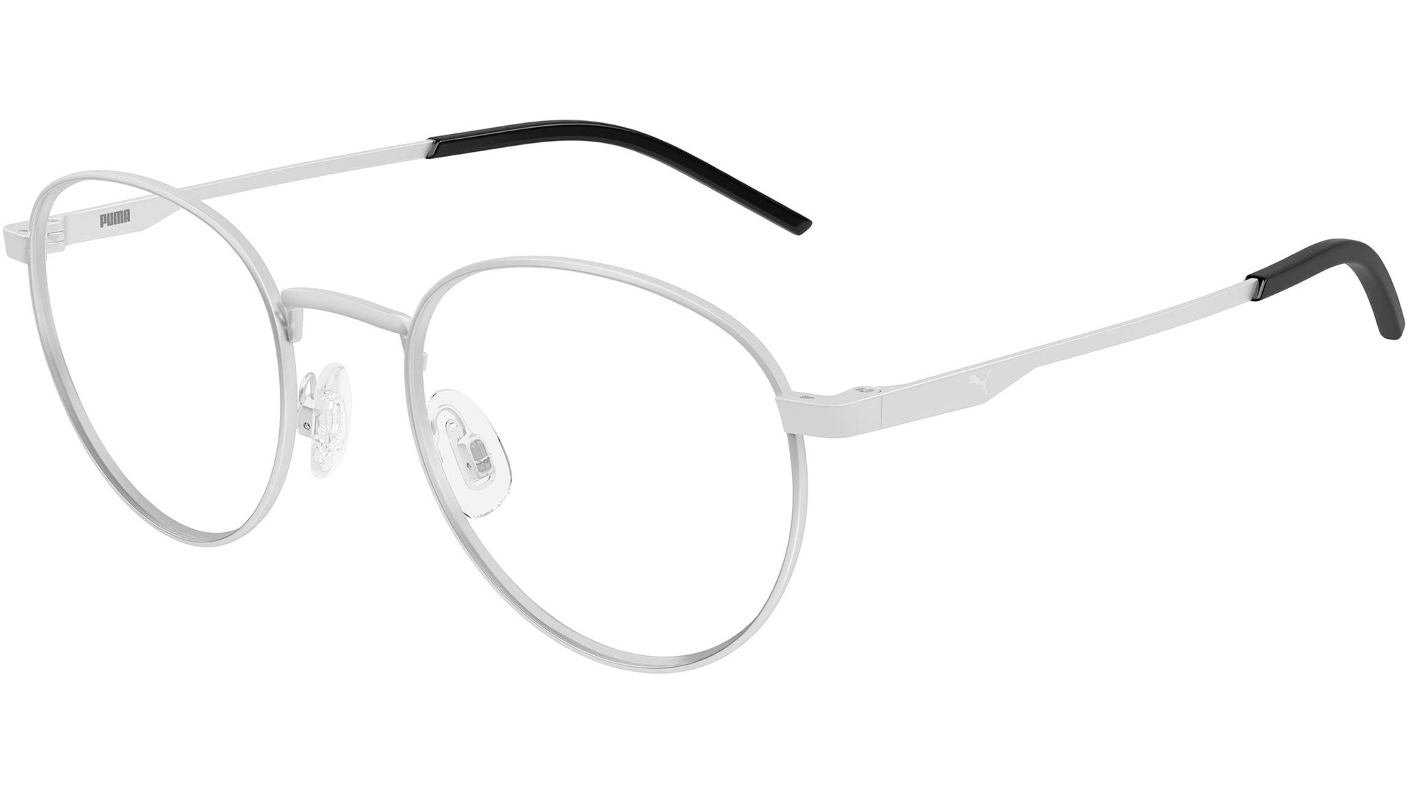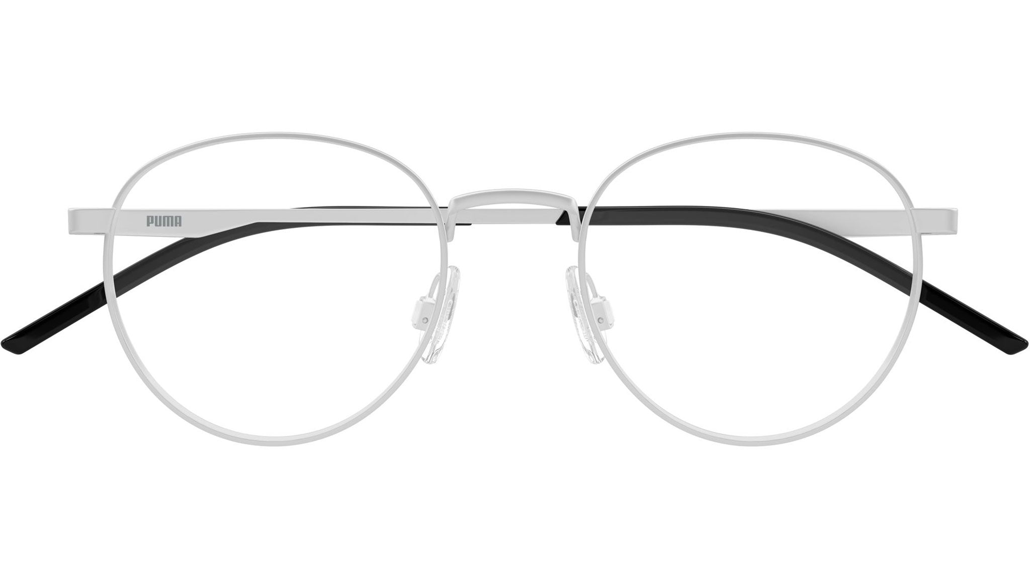 Occhiali da vista Puma PU0533O 001 uomo con montatura pantos in metallo argento opaco e lenti demo. Linea: Essential. Codice modello: PU0533O. Codice colore: 001. Rivenditore autorizzato Puma Eyewear online. Gli occhiali vengono consegnati con custodia e accessori originali e sono coperti dalla garanzia ufficiale di 12 mesi del produttore.