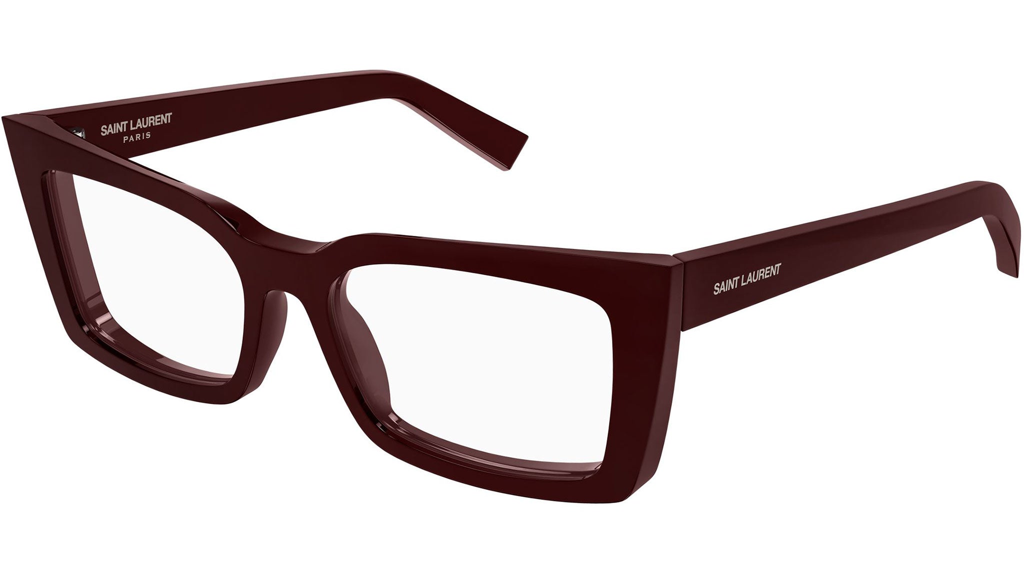 Occhiali da vista Saint Laurent SL 554 005 donna con montatura cat eye in acetato bordeaux tinta unita lucido e lenti demo. Linea: SL Logo. Codice modello: SL 554. Codice colore: 005. Made in Italy. Rivenditore autorizzato Saint Laurent online. Gli occhiali vengono consegnati con custodia e accessori originali e sono coperti dalla garanzia ufficiale di 12 mesi del produttore.
