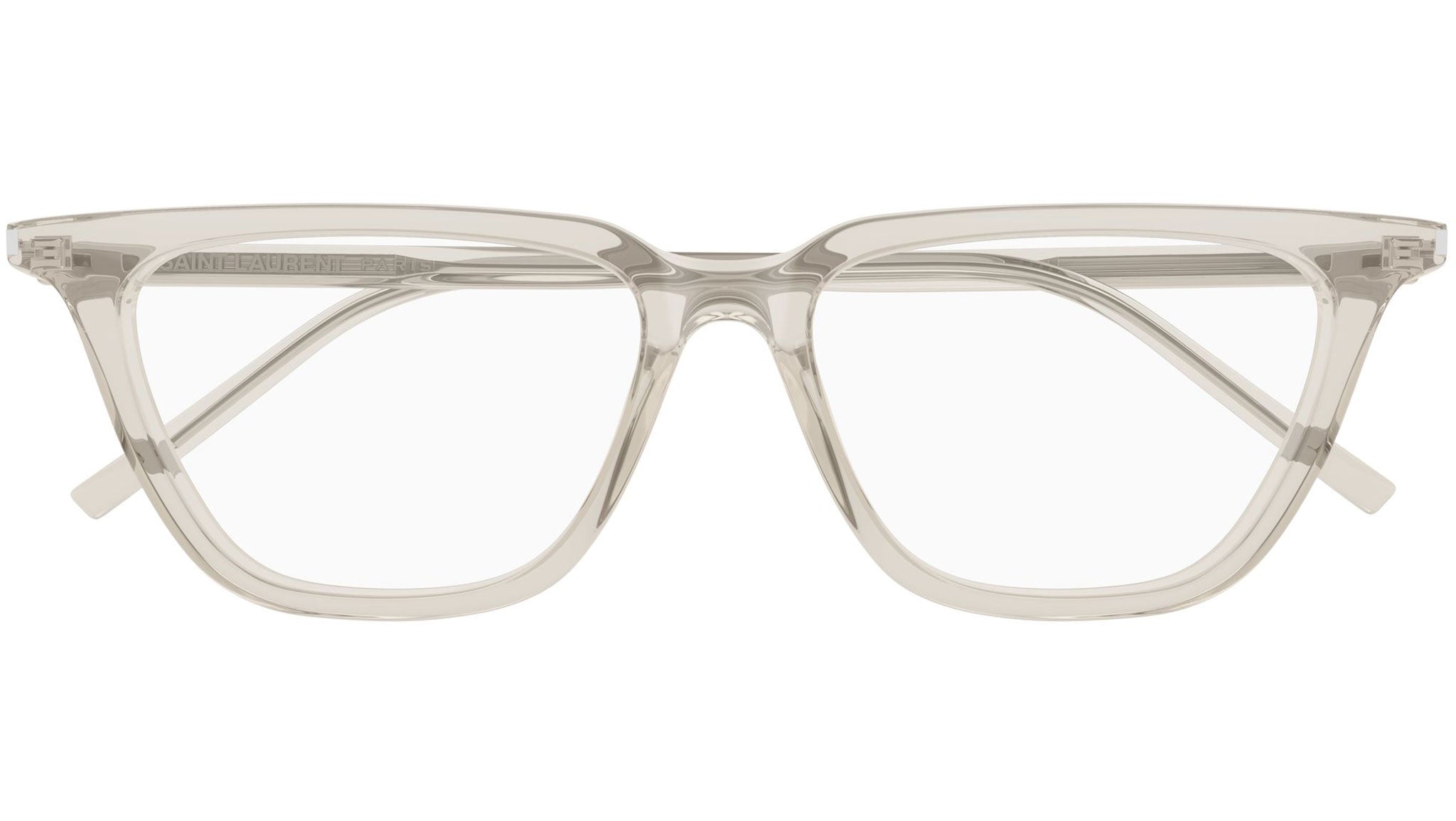 Occhiali da vista Saint Laurent SL 889 SULPICE THIN OPT 004 donna con montatura cat eye in acetato riciclato crema trasparente lucido e lenti demo. Linea: Corner Angle. Codice modello: SL 889 SULPICE THIN OPT. Codice colore: 004. Made in Italy. Rivenditore autorizzato Saint Laurent online. Gli occhiali vengono consegnati con custodia e accessori originali e sono coperti dalla garanzia ufficiale di 12 mesi del produttore.