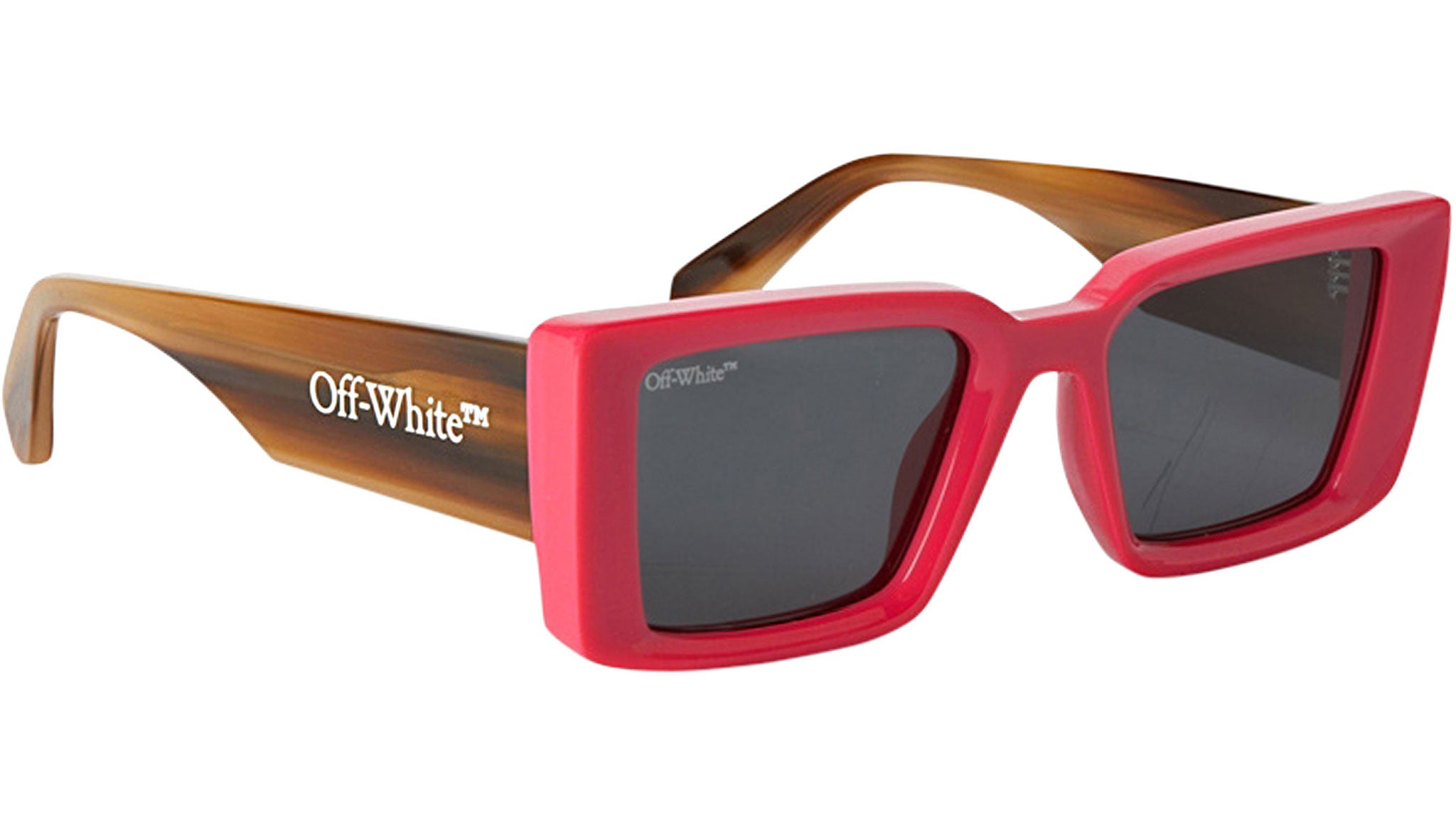Savannah by Off-White is a modern square-shaped sunglasses with a soft, cat-eye touch. The color options include classic black and tortoiseshell, as well as fun, pop shades like pink and blue, with contrasting tortoiseshell temples. The Off-White logo embedded on the temples adds a classic touch to the style.