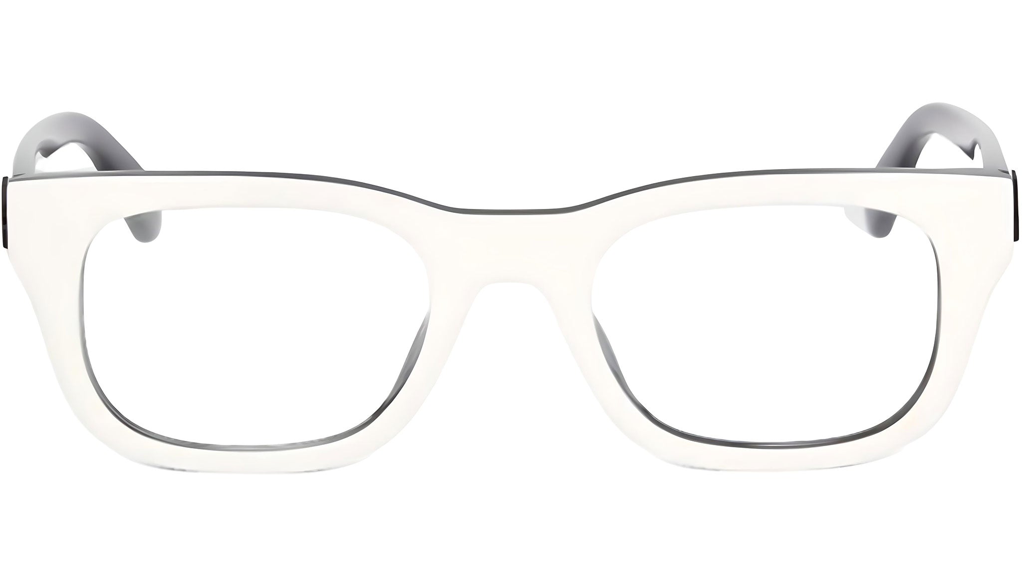 Off-White Style 7N eyeglasses, color code 0100, with white/black acetate front and demo lenses. Off-White Eyewear authorized online dealer. The glasses are delivered with original case and accessories and are covered by the official 12-month manufacturer's warranty.