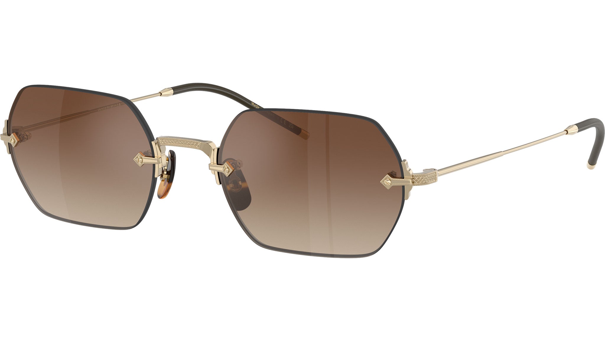 Occhiali da sole Oliver Peoples TK-13 OV1353ST 5035Q1 unisex con montatura geometrica in titanio oro e lenti in CR-39 color marrone scuro sfumato a specchio. Naselli regolabili. Linea: Essentials. Codice modello: 0OV1353ST. Codice colore: 5035Q1. Made in Japan. Rivenditore autorizzato Oliver Peoples online. Gli occhiali vengono consegnati con custodia e accessori originali e sono coperti dalla garanzia ufficiale di 12 mesi del produttore.