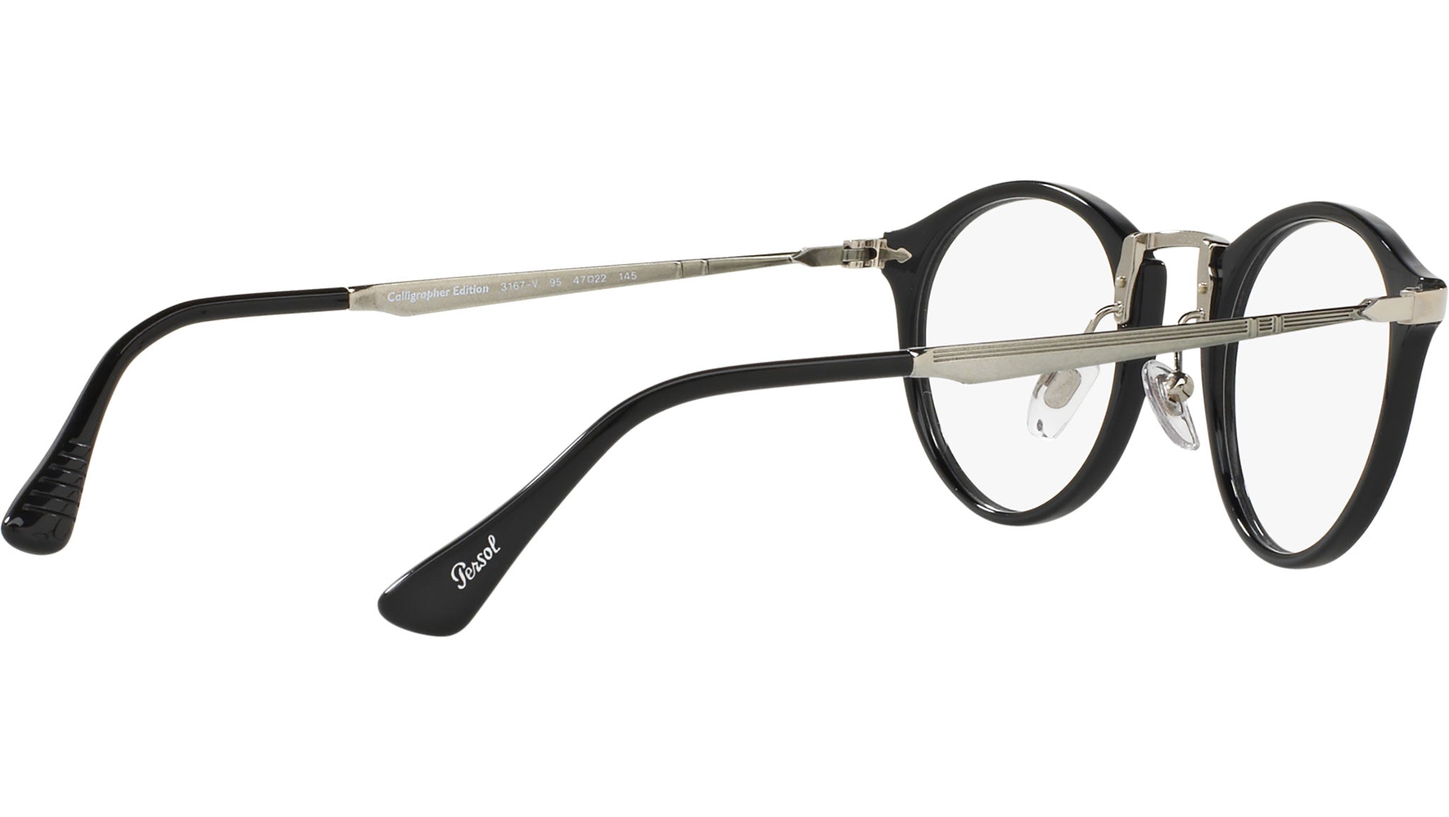Persol PO3167V color code 95 black acetate optical frame with demo lenses. Persol harmoniously blends aesthetics and technology. It pays meticulous attention to every detail, combining distinctive style with practical solutions. Driven by an unwavering passion for perfecting craftsmanship and a relentless pursuit of innovation, Persol embodies true Italian quality. Its evocative name means 'for the sun', a living testament to the rich heritage of superior craftsmanship and excellence at the pinnacle of Italian artisanal manufacturing. Renowned for its timeless design and artistry in creating unique eyewear, the brand has become a favorite choice in the film industry.