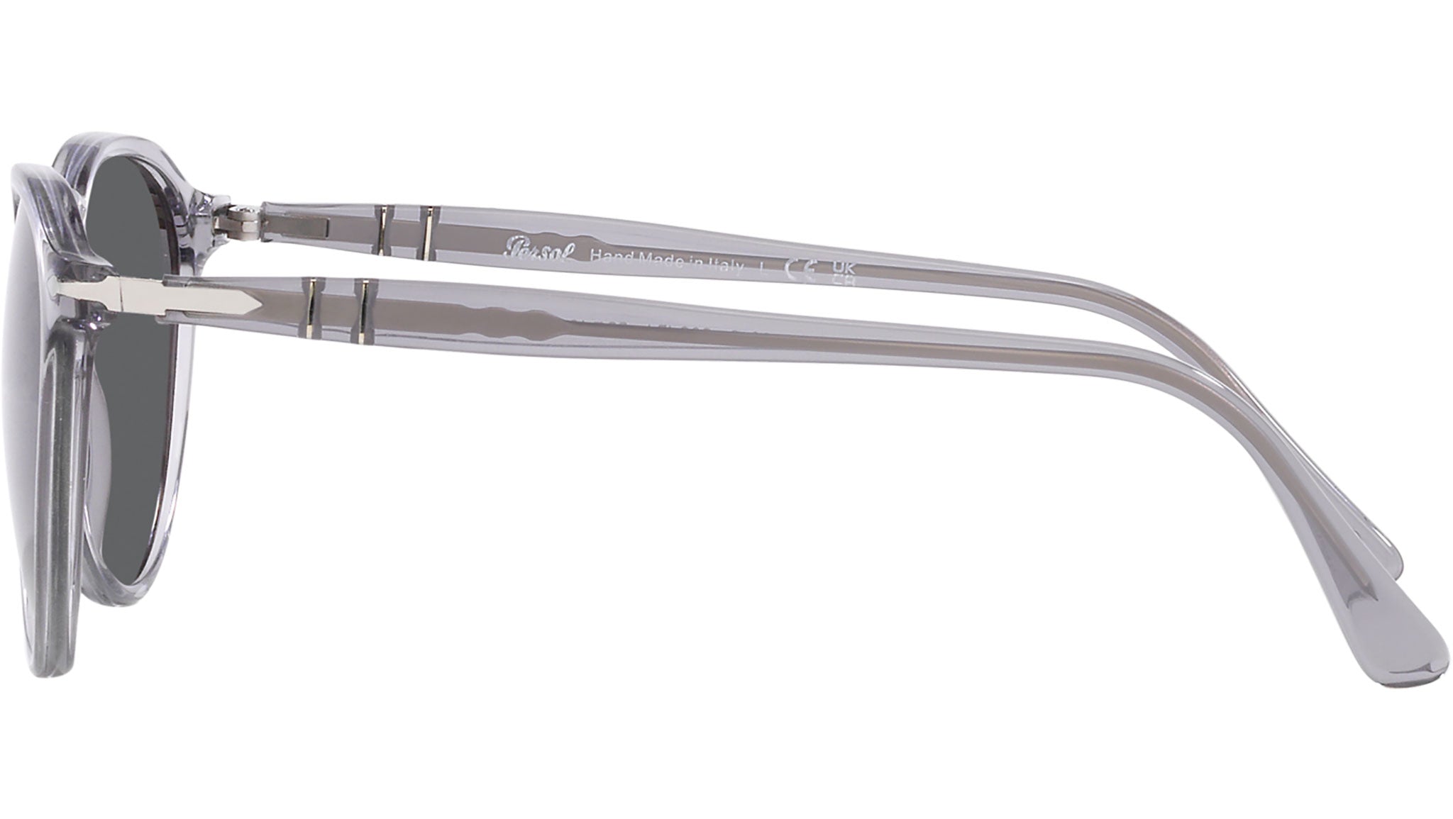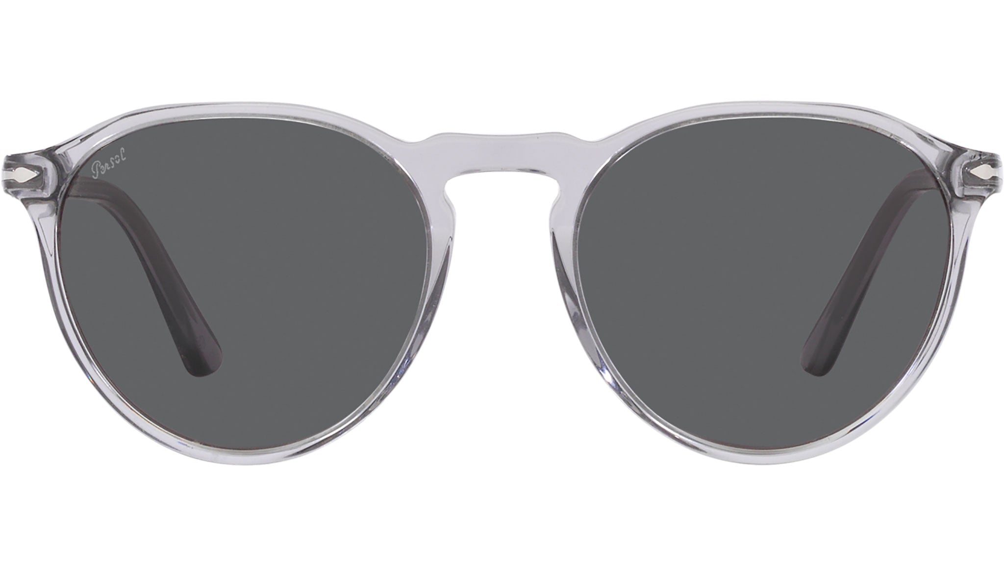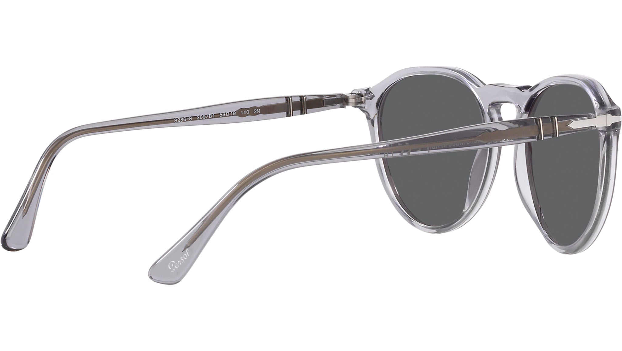 Persol PO3286S sunglasses color code 309/B1 transparent grey acetate with grey lenses. Persol harmoniously blends aesthetics and technology. It pays meticulous attention to every detail, combining distinctive style with practical solutions. Driven by an unwavering passion for perfecting craftsmanship and a relentless pursuit of innovation, Persol embodies true Italian quality. Its evocative name means 'for the sun', a living testament to the rich heritage of superior craftsmanship and excellence at the pinnacle of Italian artisanal manufacturing. Renowned for its timeless design and artistry in creating unique eyewear, the brand has become a favorite choice in the film industry.