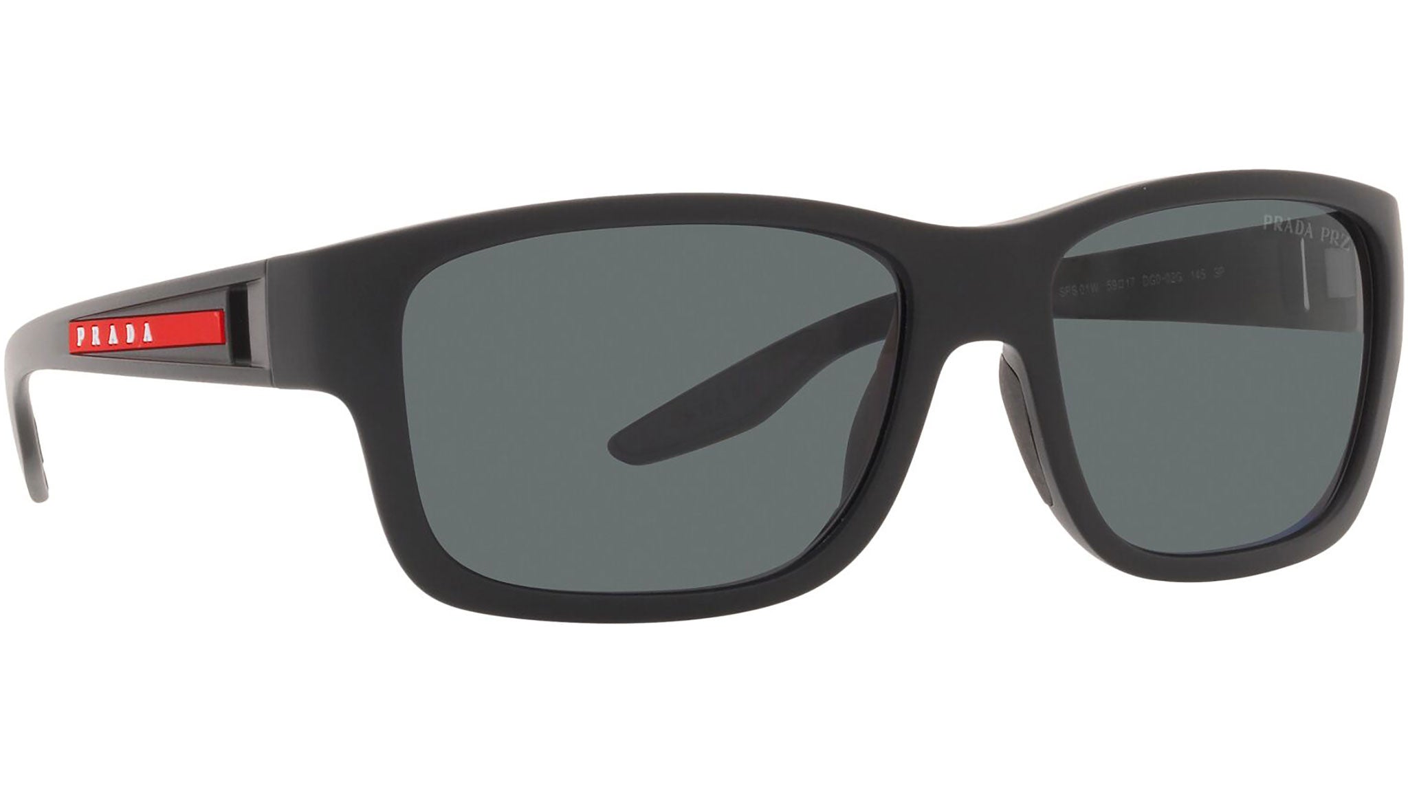 Prada Linea Rossa sunglasses model PS 01WS in the color variant DG002G black rubber with dark gray lenses. A perfect fusion of the concepts of sportswear and contemporary elegance: the Prada Linea Rossa sunglasses line expresses all the quality and artisanal refinement of the Prada fashion house in a modern casual style.