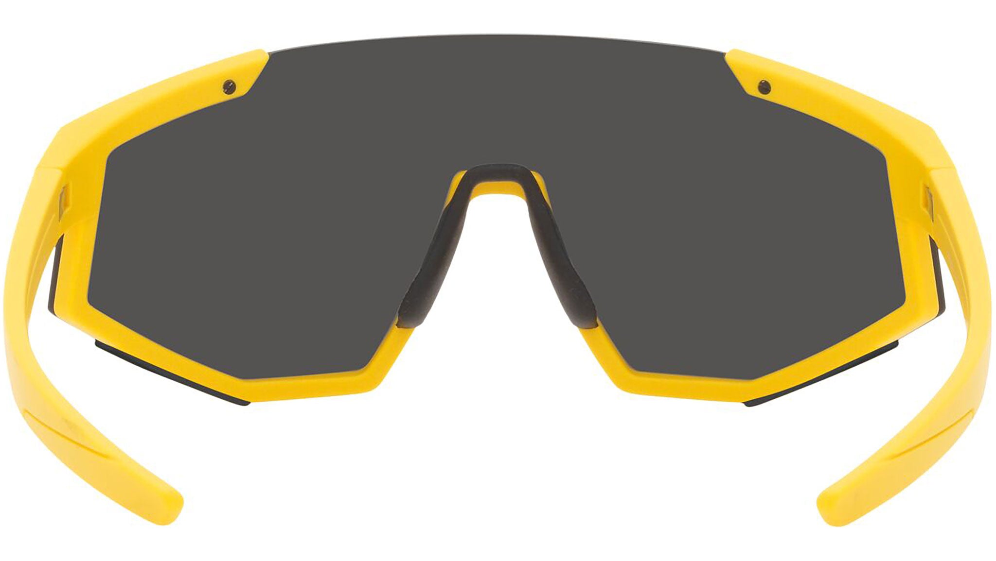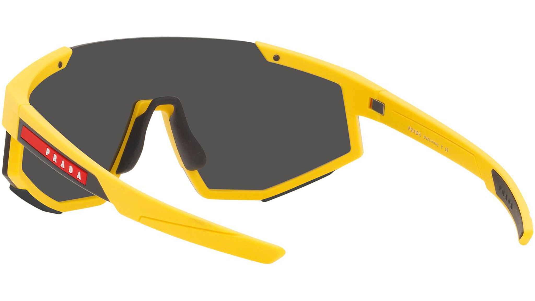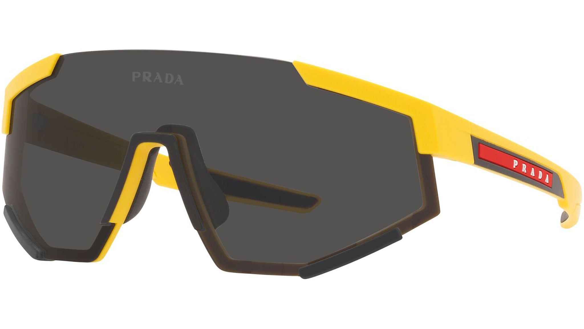 Prada Linea Rossa sunglasses model PS 04WS in the color variant 03W06F rubber yellow with dark gray lenses. A perfect fusion of the concepts of sportswear and contemporary elegance: the Prada Linea Rossa sunglasses line expresses all the quality and artisanal refinement of the Prada fashion house in a modern casual style.