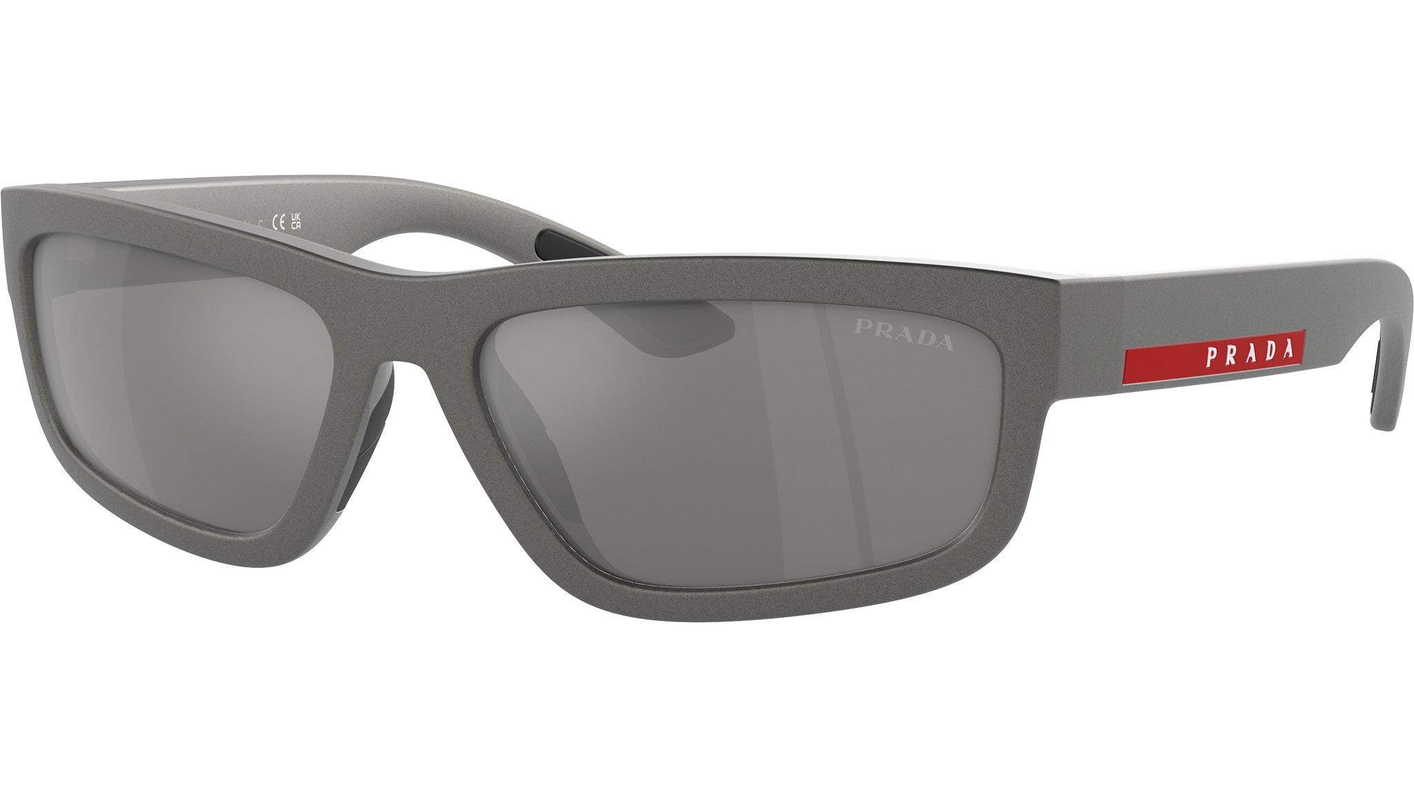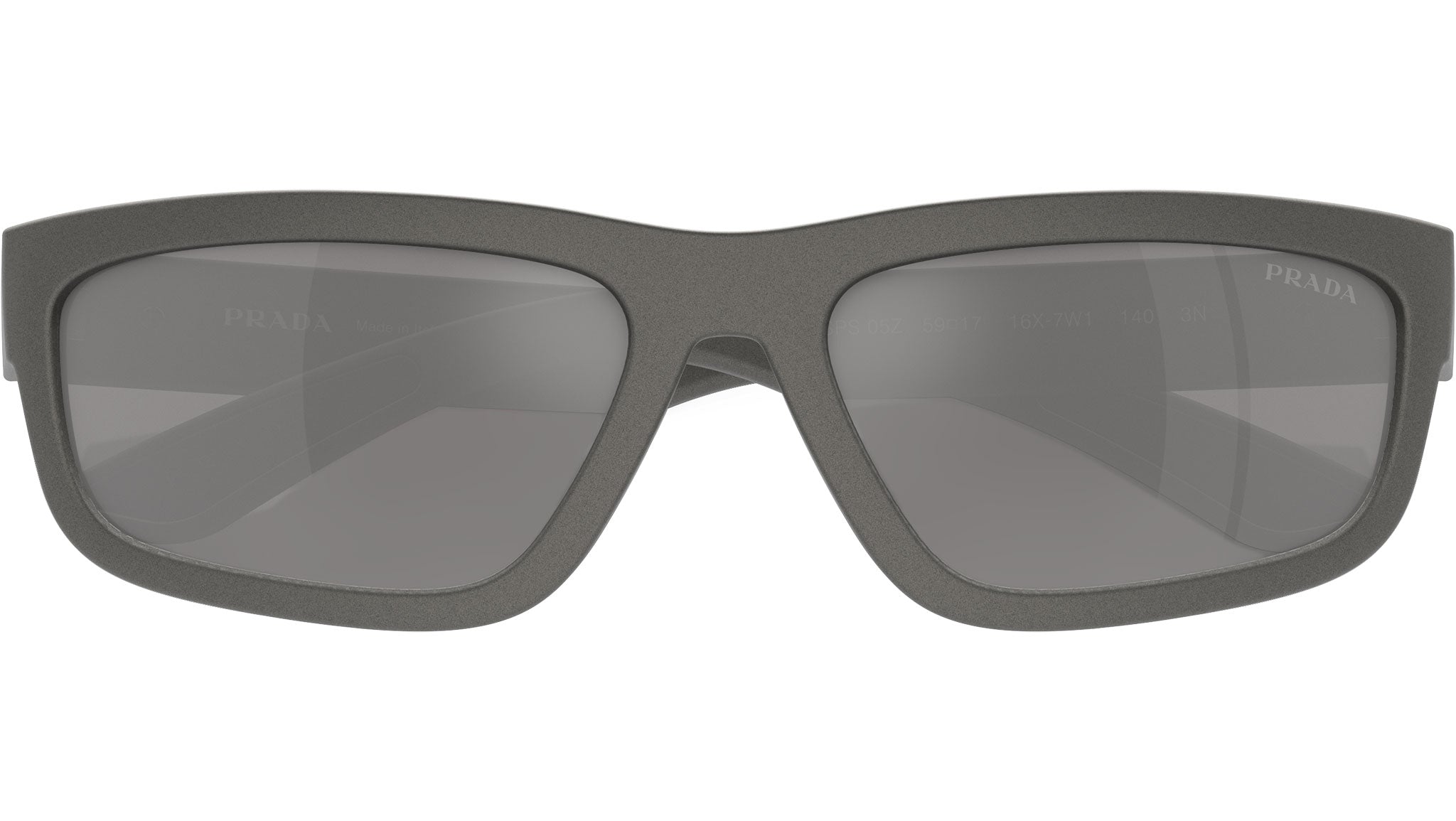 Occhiali da sole Prada Linea Rossa PS 05ZS 16X7W1 uomo con montatura rettangolare in iniettato grigio metallico e lenti in poliammide color grigio a specchio argento. Vestibilità a ponte alto. Linea: Lifestyle. Codice modello: PS05ZS. Codice colore: 16X7W1. Made in Italy. Rivenditore autorizzato Prada Sport online. Gli occhiali vengono consegnati con custodia e accessori originali e sono coperti dalla garanzia ufficiale di 12 mesi del produttore.